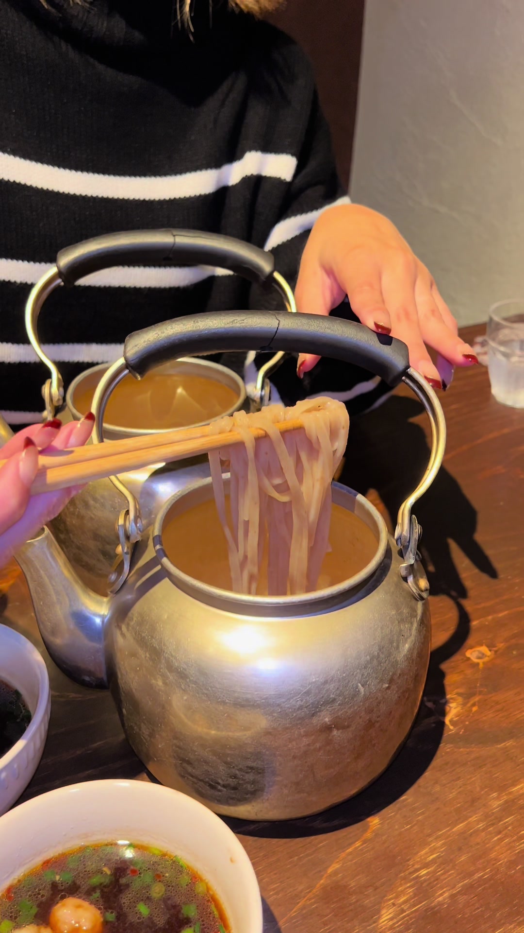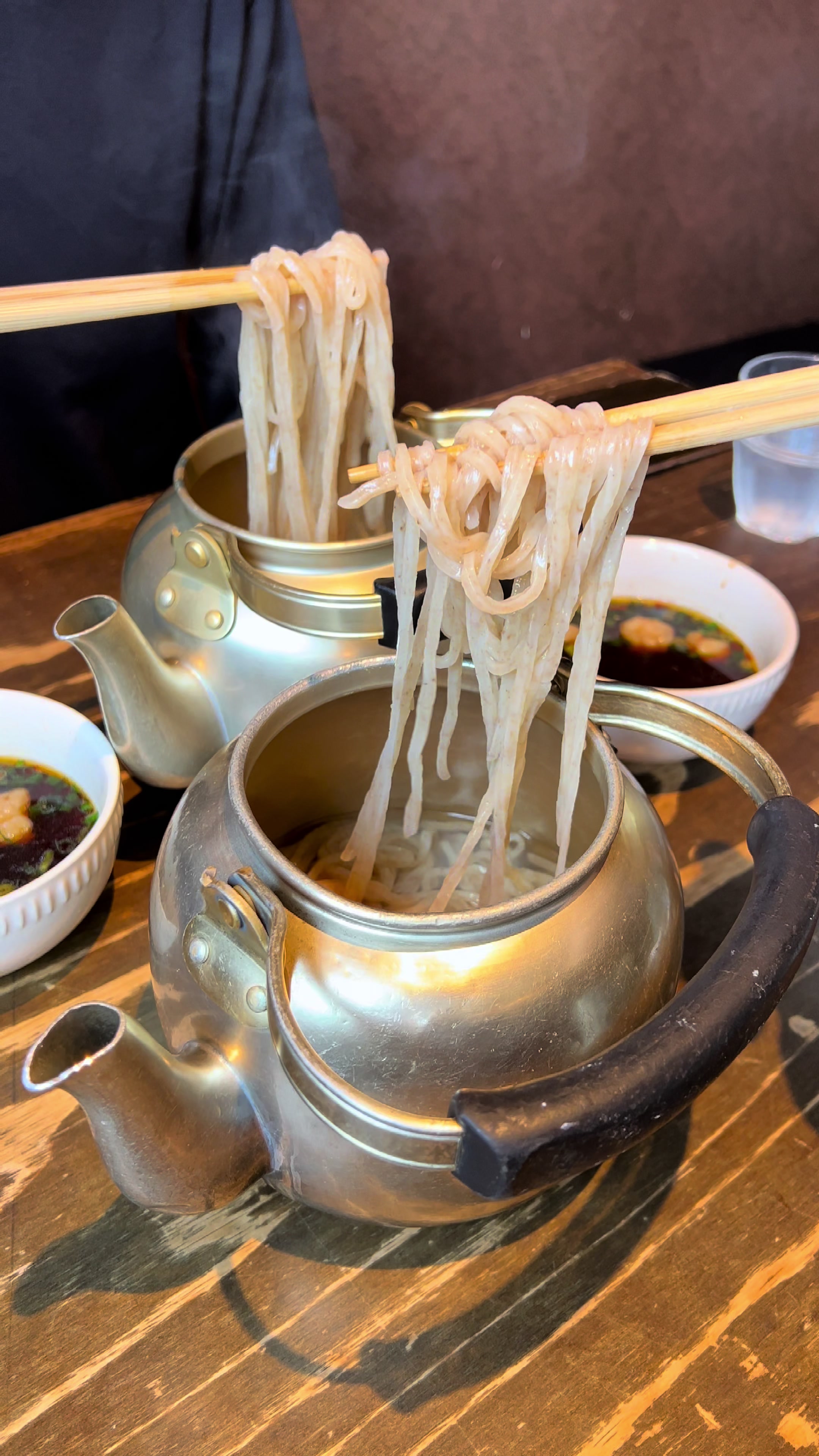 《やかんに入った福岡名物のズボラうどん(Hormone udon served in a kettle in Fukuoka)》