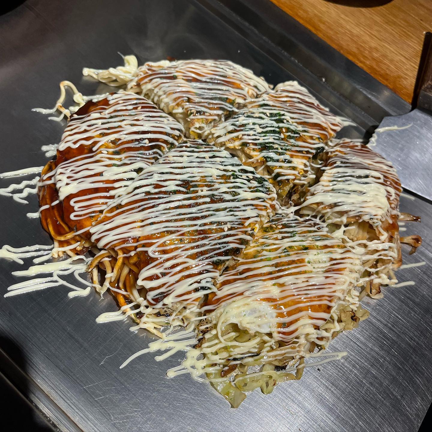 目の前で焼いてくれるので見てて楽しかった🍻ビールと合う一品🤍