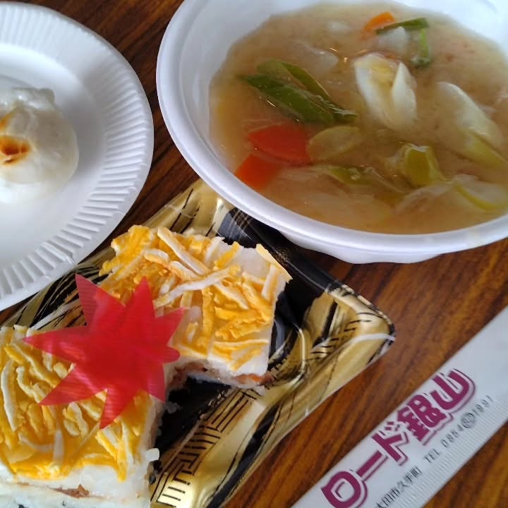 本日のランチは、ロード銀山の箱寿司に豚汁。...