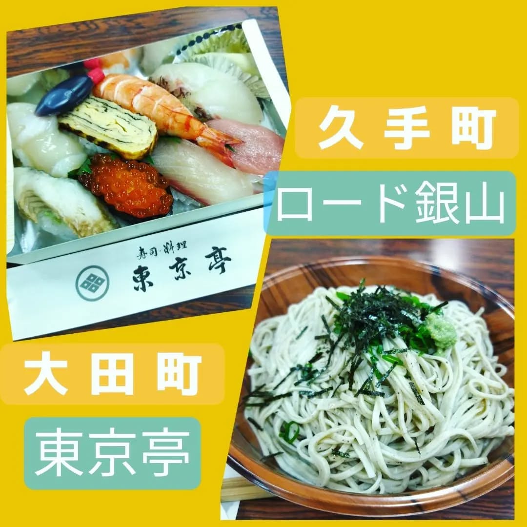 本日は #大田町 にある #東京亭 さんの #お寿司 と #久手町 にある #ロード銀山 さんの #そば で #仕事納めランチ 🎵
