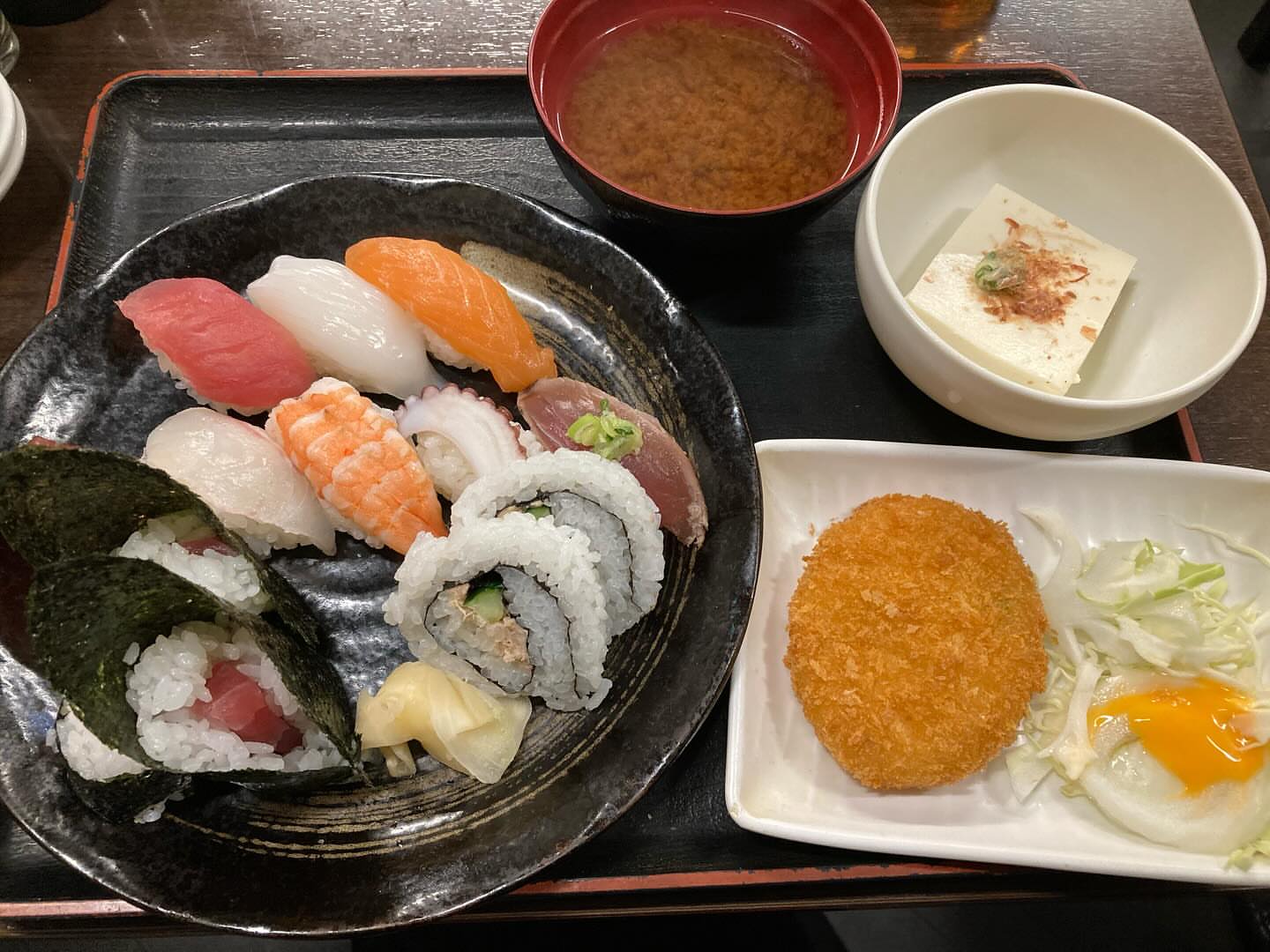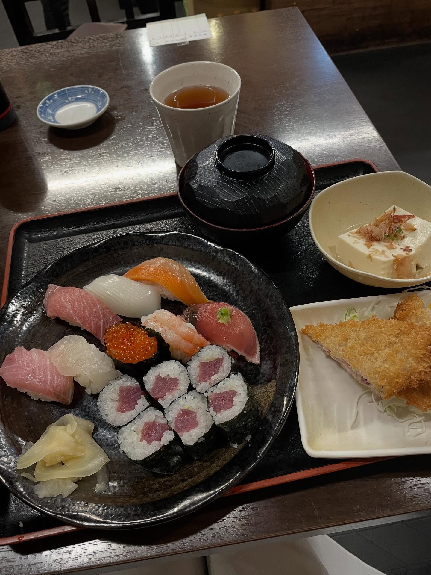 名古屋来たら千種でコスパ寿司ランチ!人気寿司店へ。運良く並び少なく10分ほどで入店。すし定食上@1,150円をオーダー。好物アジフライはフワフワ。セパレートされ...
