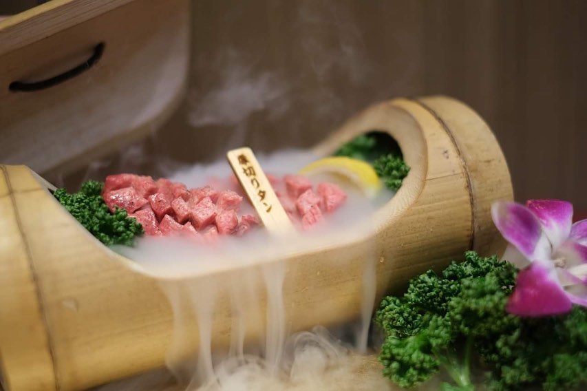 幻想的な竹の中から現れたのは厚切りタン🥩