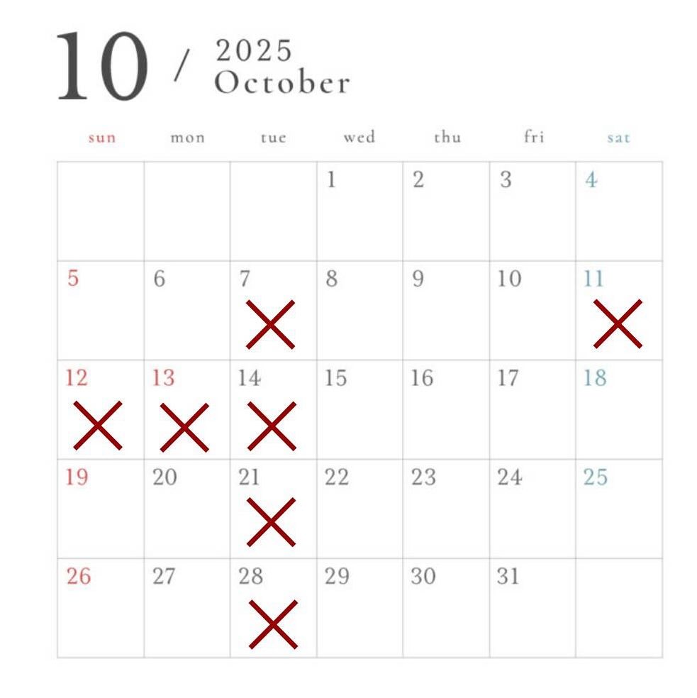 10月の営業日のお知らせです!