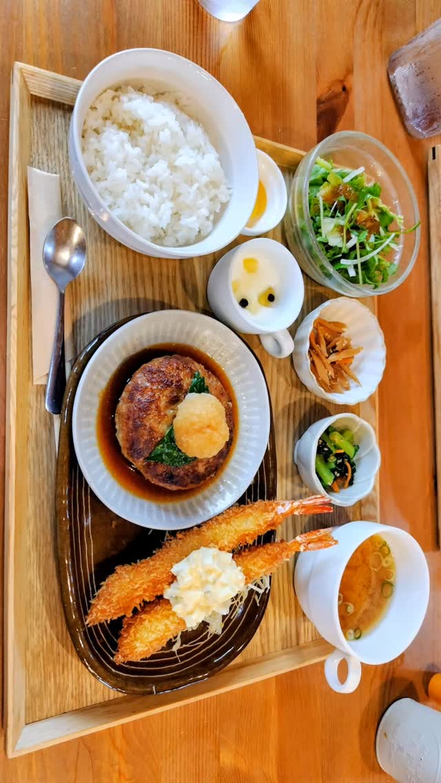 カフェレストログでAランチのハンバーグ和風&海老フライタルタルソース、Bランチの季節野菜とローストビーフのサラダ&鶏の唐揚げを頂き...