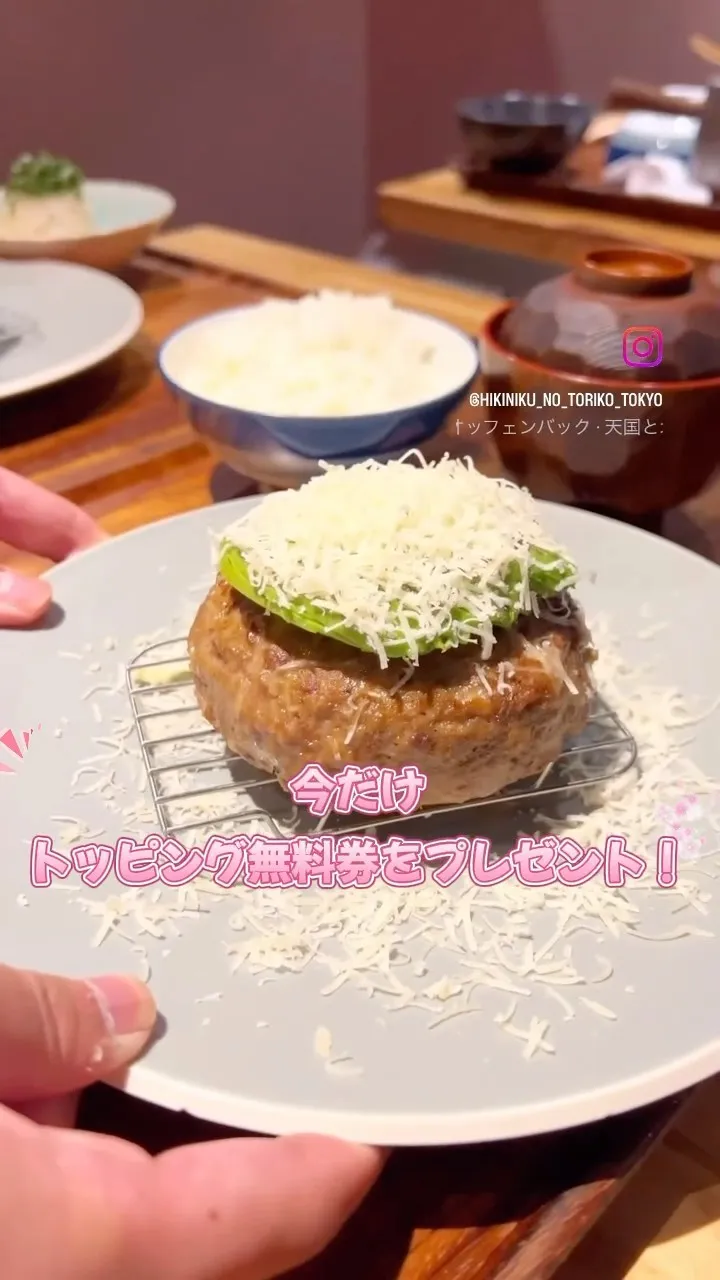 期間内、当投稿に「ハンバーグ」とコメントいただくことで、トッピング1つ無...