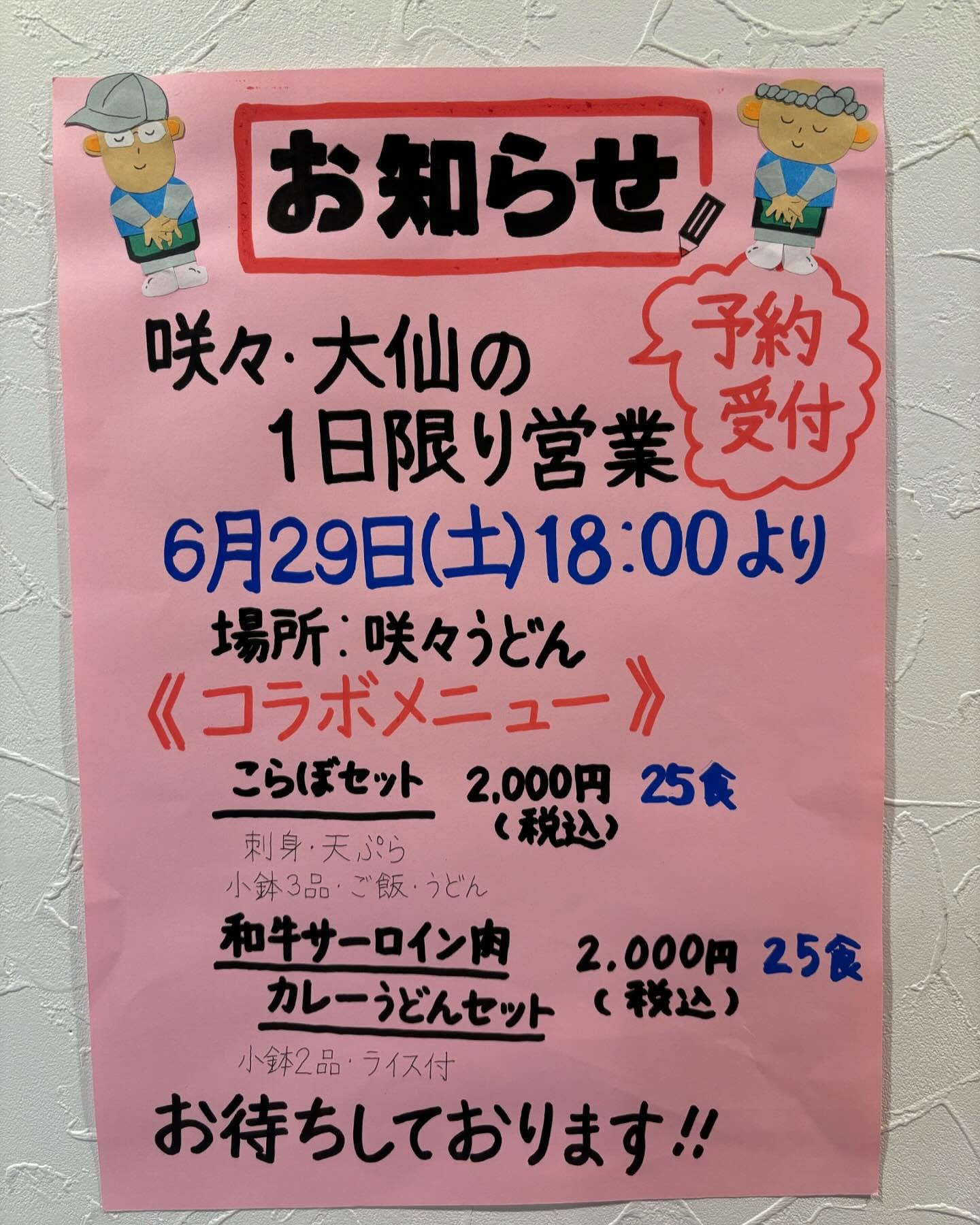 大仙さん&咲々うどん、初のコラボ営業開催します🤗㊗️