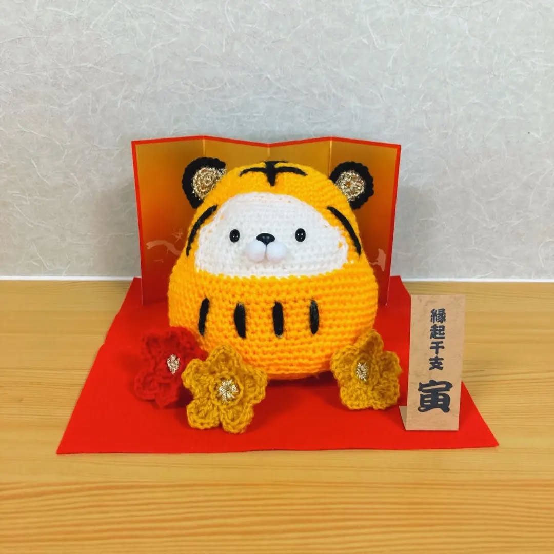 祖母と編んだ寅のあみぐるみ👏