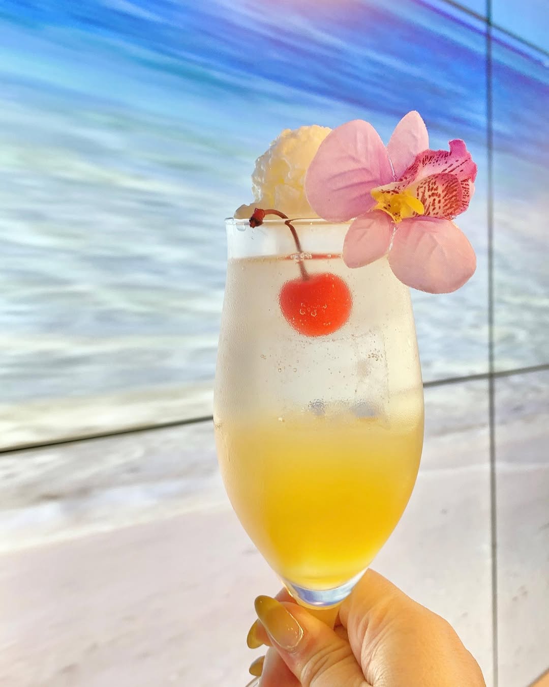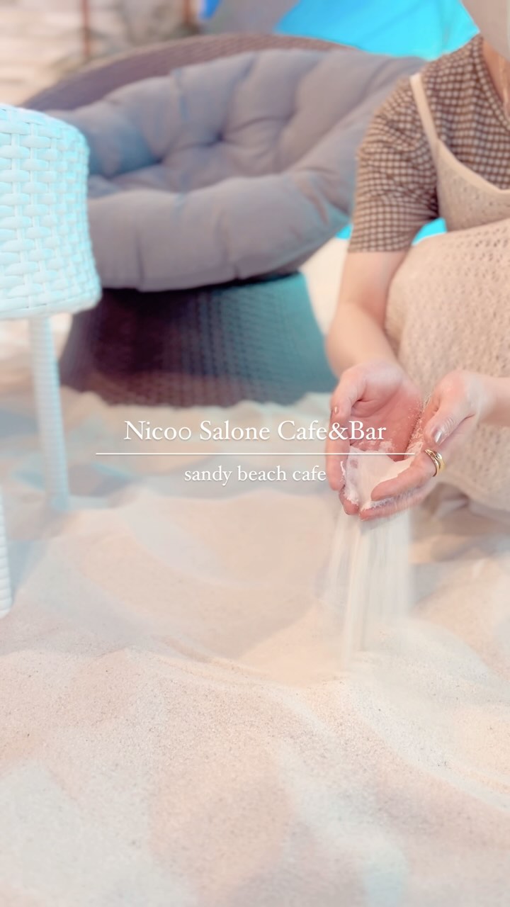 西葛西の Nico0 Salone Cafe&Bar は店内に砂浜がある新感覚カフェ。裸足で寛げます。大型スクリーンに海景が映え、ブランコ型フォトスポットや多彩な席を用意。リゾート感あふれるフードと花付きドリンクが魅力。夜はBAR営業で更に映えます。