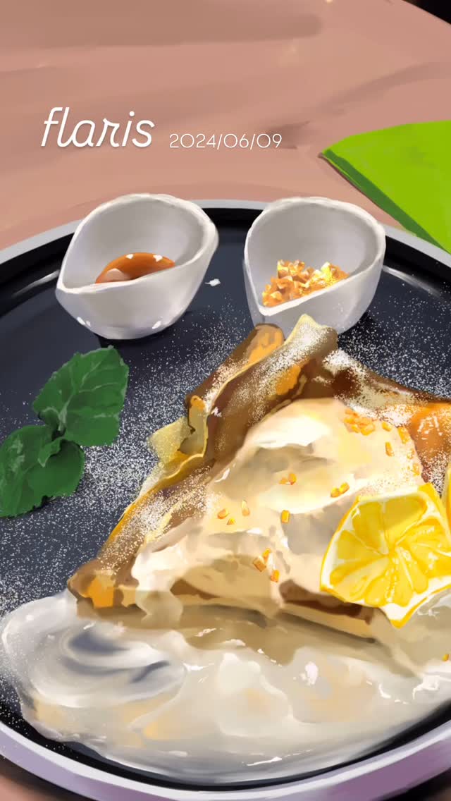 バニラアイスの乗ったフレンチトーストにレモンピールが爽やかでめちゃくちゃ美味しかった。途中でザラメを振りかけたり蜂蜜を振り...