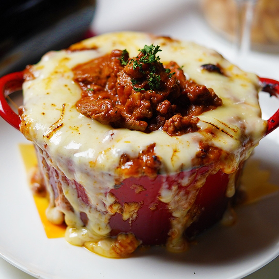 チーズの下には、粗挽き肉がゴロゴロ入ったボロネーゼが入っており、太麺にミートソースとチーズが絡ん...