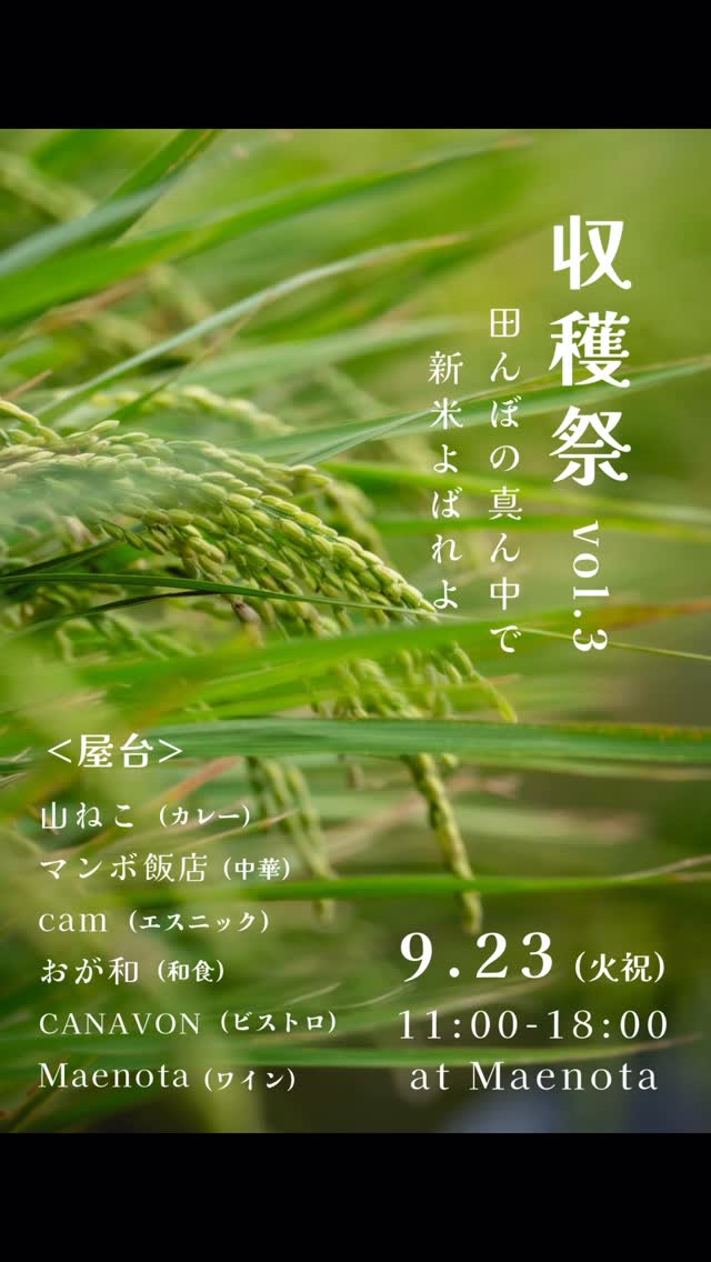 店の向かいにある田んぼの新米収穫祭、秋分の日に今年も開催します!