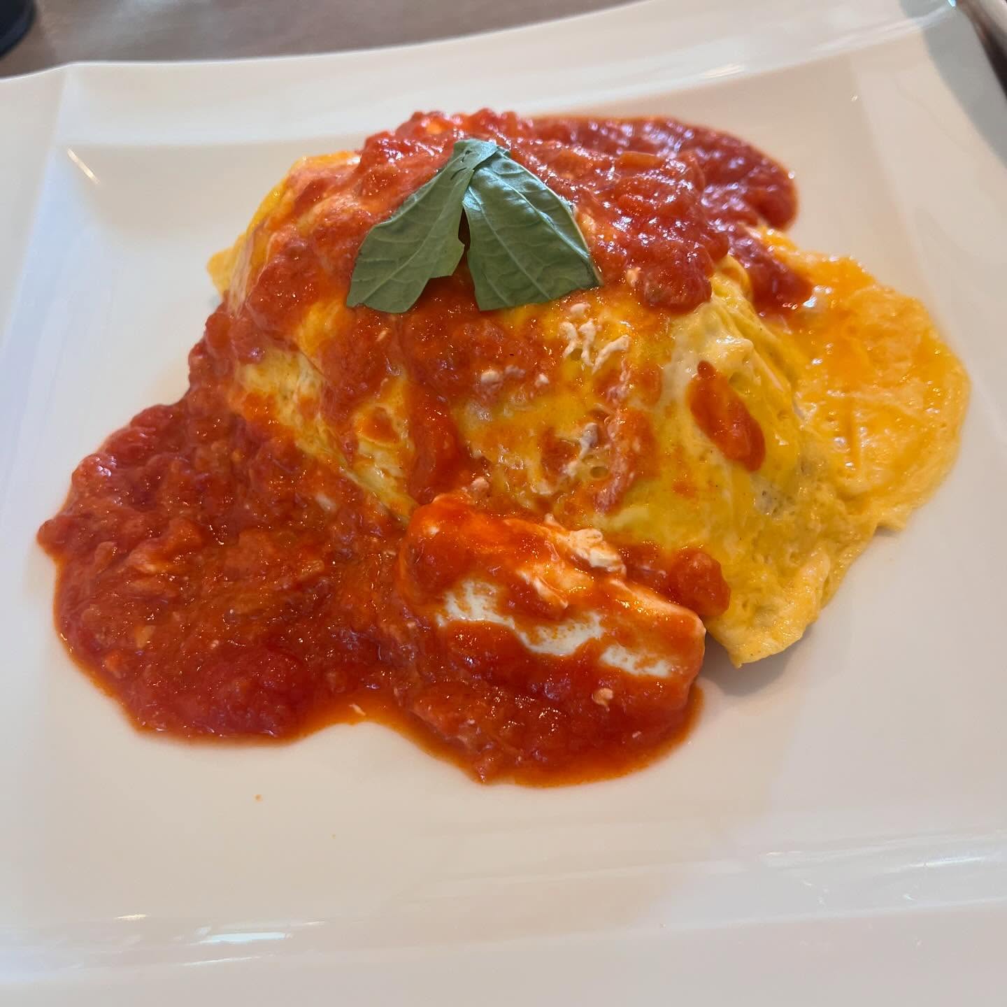 天使のオムライス(クリームチーズ入りトマトソースかけ)