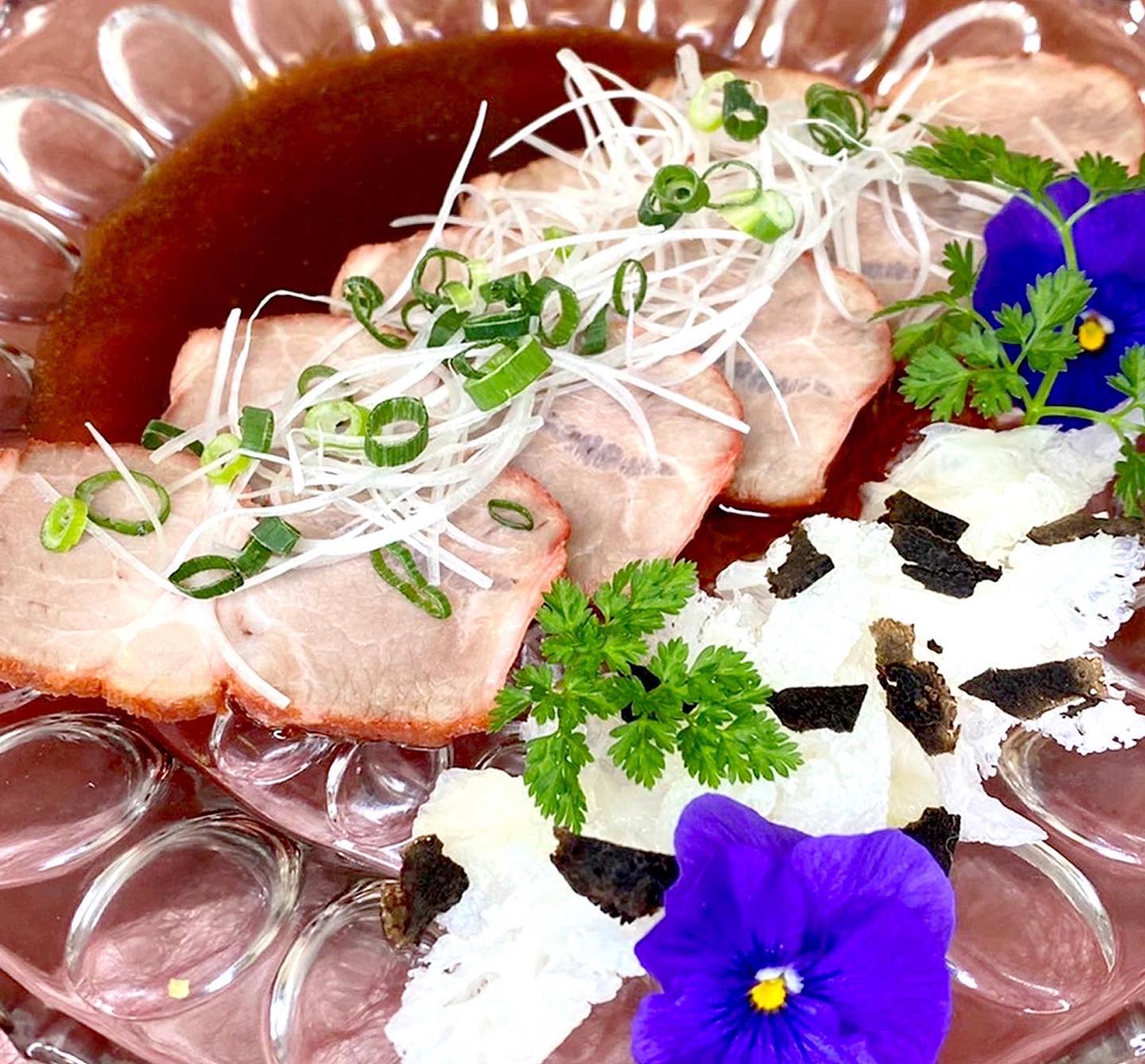 【自家製チャーシューとクラゲの冷菜トリュフ風味】