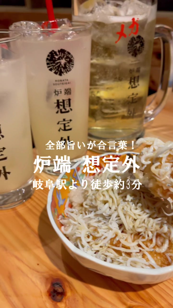 岐阜・玉宮のオシャレな大衆酒場。モダンな空間で炉端焼きを中心に新鮮な刺身やサーモンの親子レアカツ、雲仙ハムの炙りが味わえます。しらすおろし食べ放題と手頃な価格が魅力です。