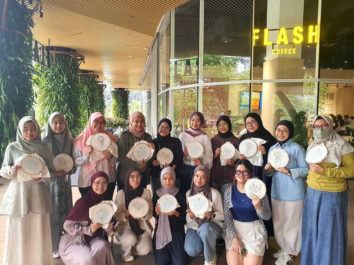 Keseruan sesi Embroidery di Flash Coffee, Epiwalk,...
