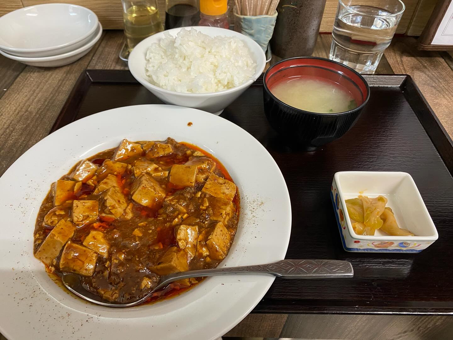 激辛麻婆豆腐ご飯セットに餃子つけてガッツリいってきた🥟