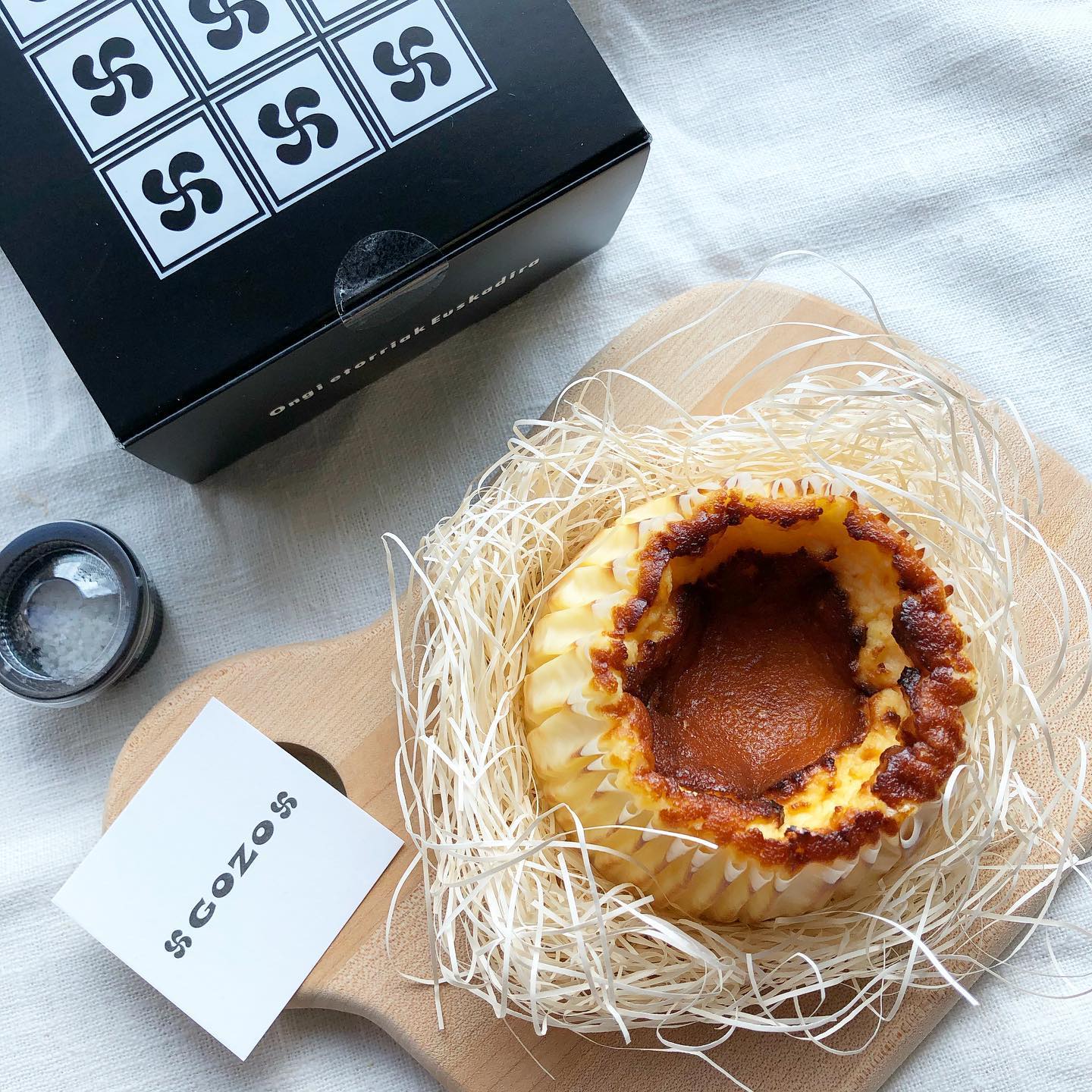 GOZOのバスクチーズケーキは、道産素材を使った濃厚な味わいが魅力のテイクアウト専門店です。表面は香ばしく焼け、内側はふわりとろけます。ゲランドの塩を添えると風味が引き立ち、ワインとも相性抜群。12cmサイズがおすすめです。