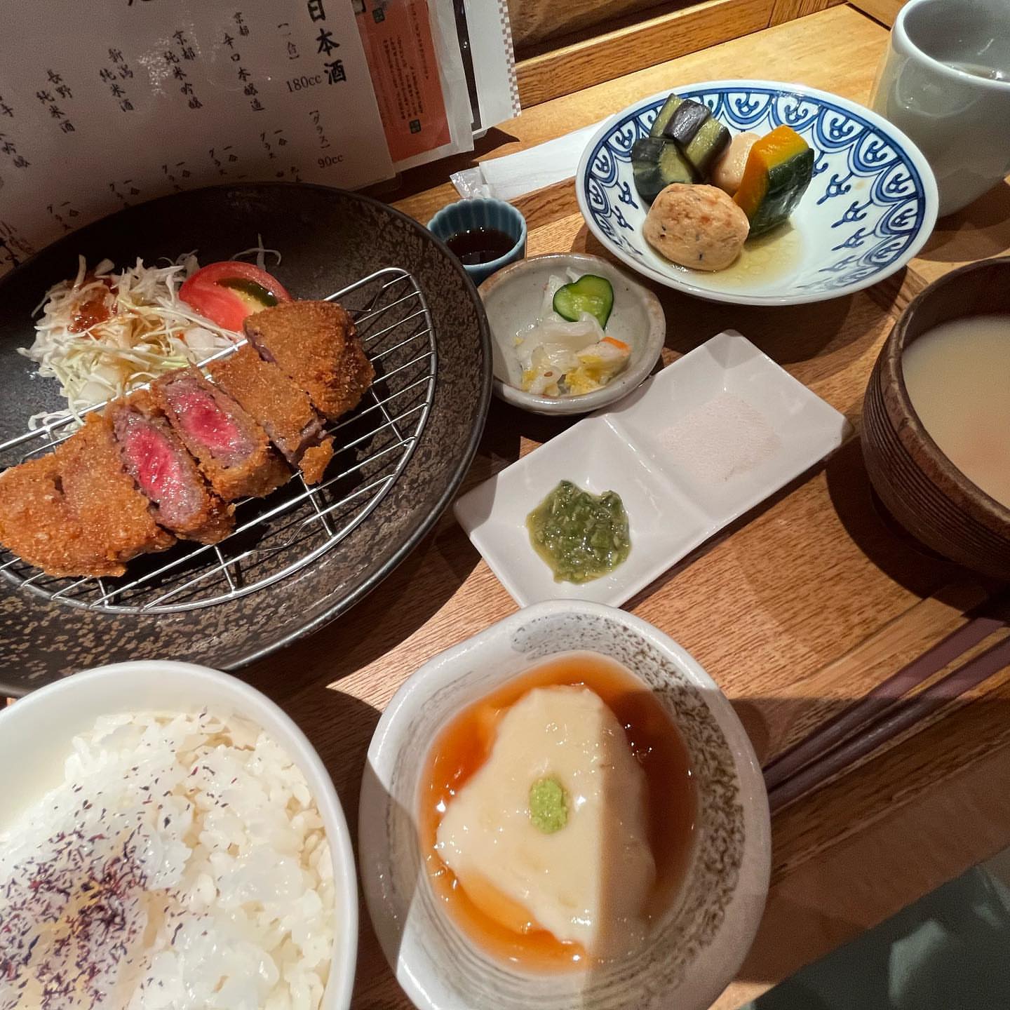 恵比寿の小割烹おはしは、漬けマグロとアボカドを胡麻だれで仕上げるどんぶりが看板メニューです。セットの豆腐と味噌汁はとろりとした優しい味わいで、昔ながらの旅館を思わせる落ち着いた雰囲気があります。