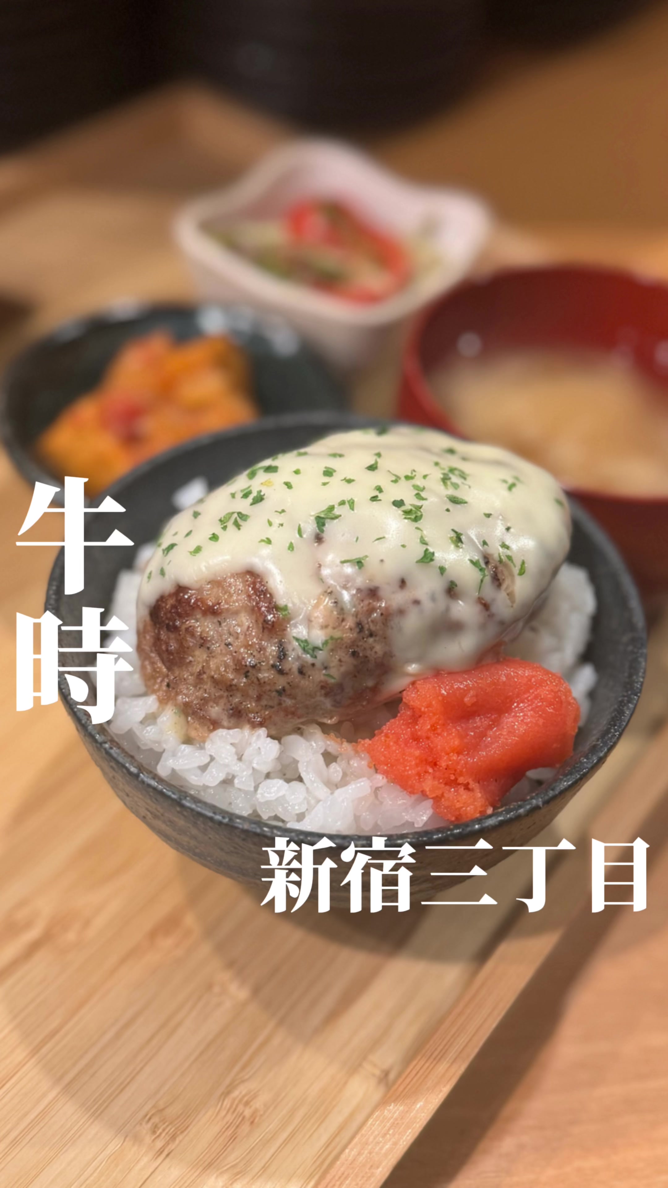 あつあつのチーズハンバーグと明太子でご飯をかきこむぜ!📍新宿二丁目『牛時』#新宿グルメ