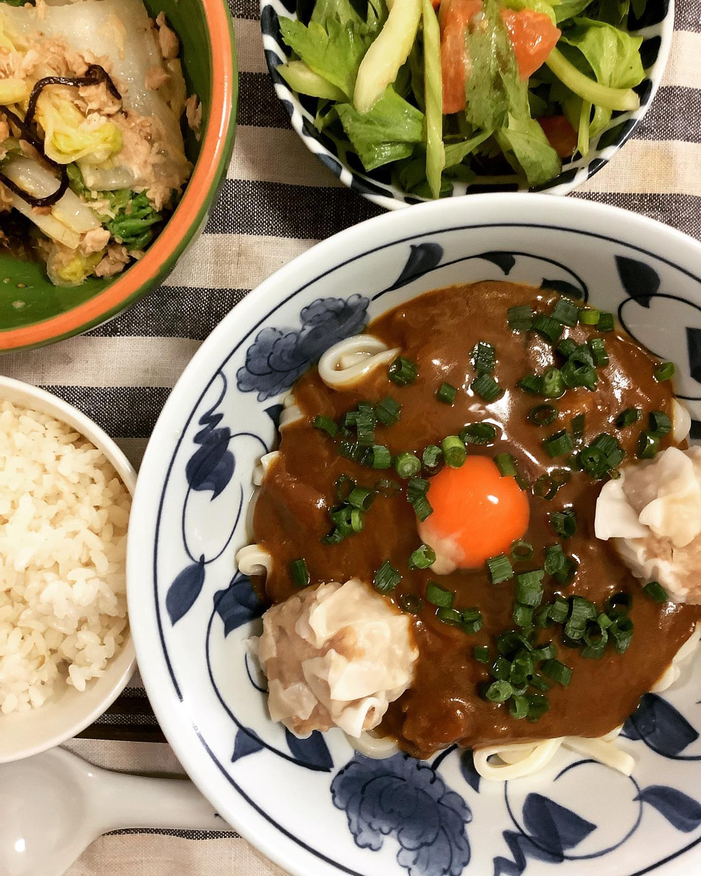 【#昼シュウマイ は #カレーの残りアレンジ で #シュウマイカレー うどん】