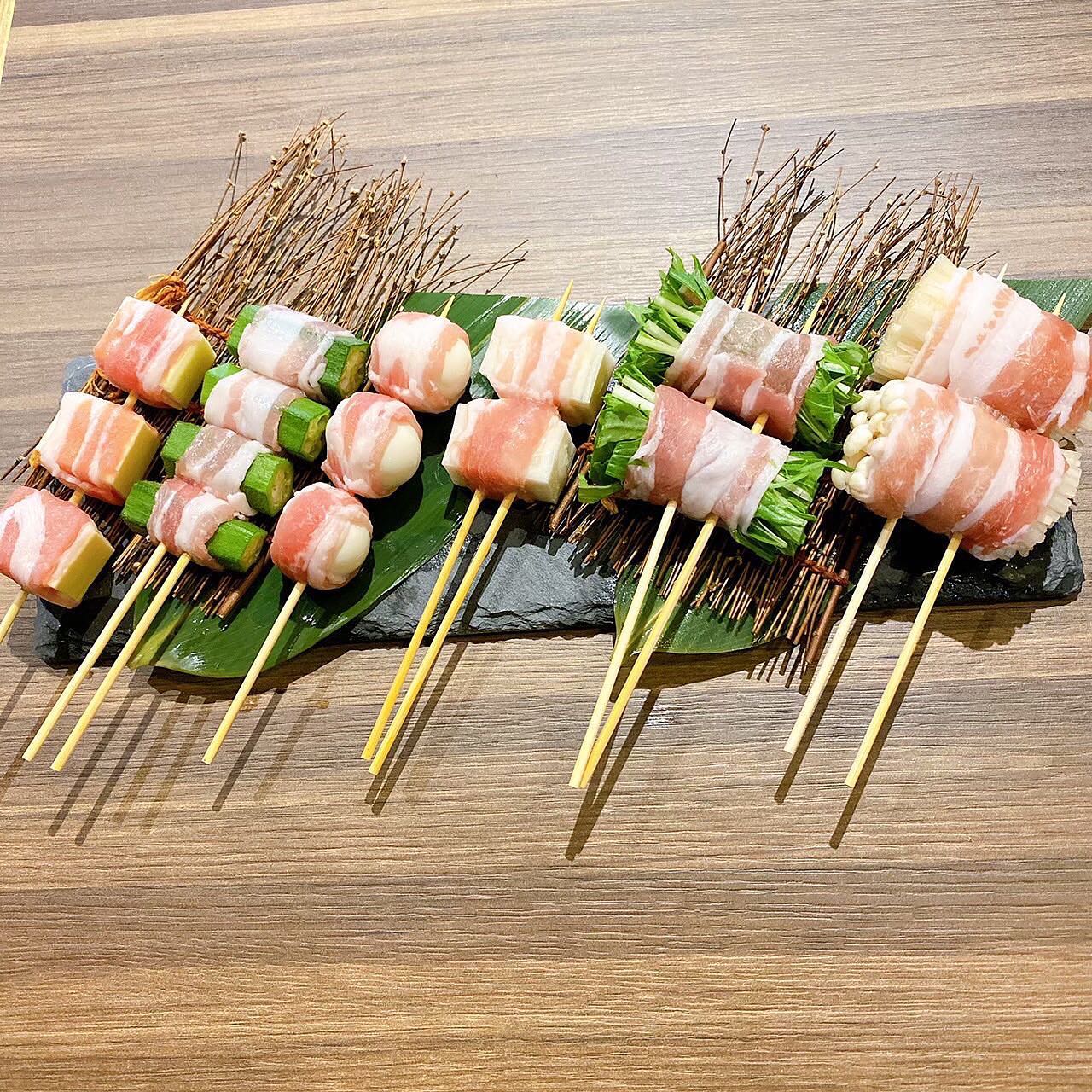 福岡名物のとりかわ以外にも野菜巻き串など巻物等取...