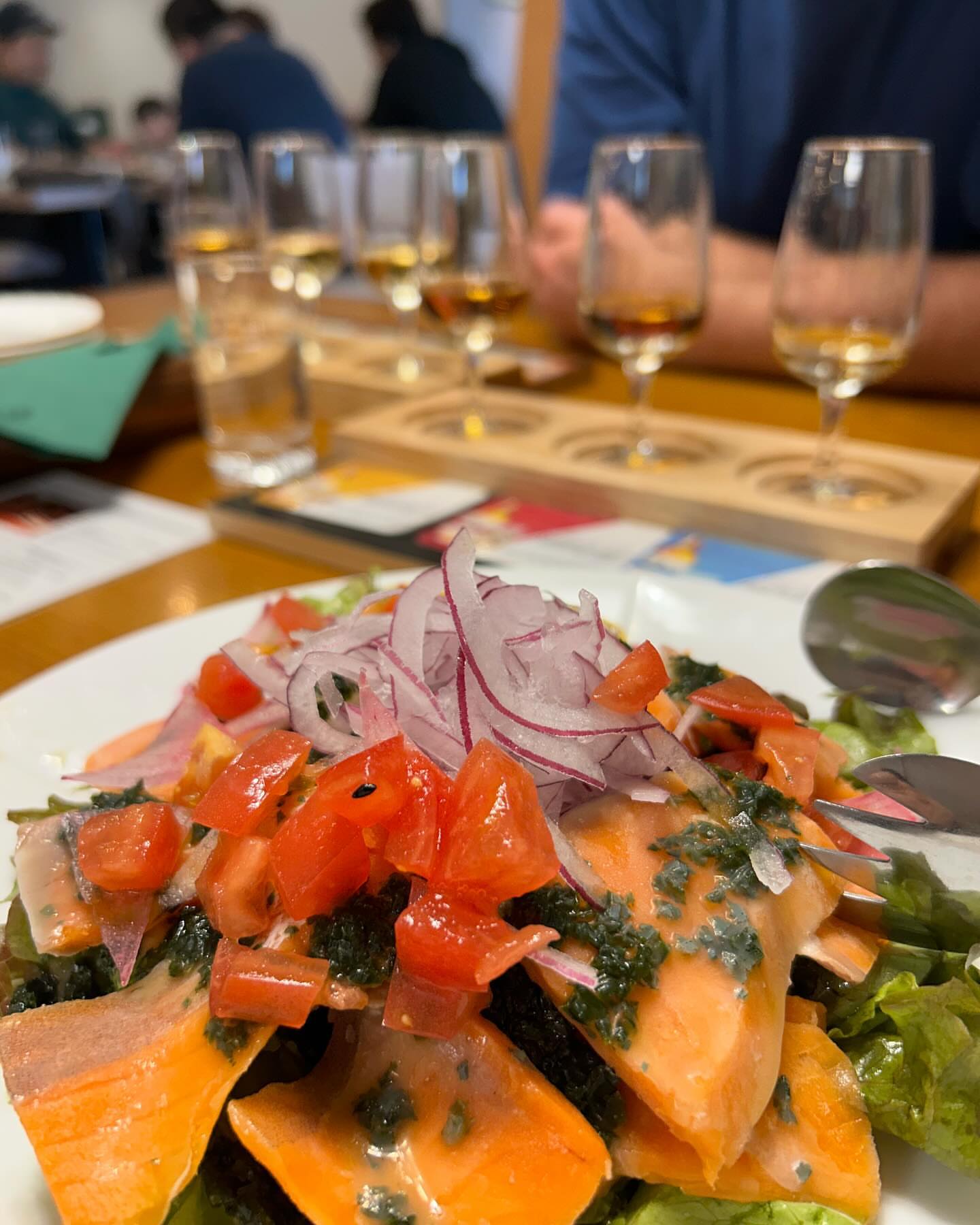 Salmon carpaccio for lunch and two whisky tasting sets that we shared. The food ...