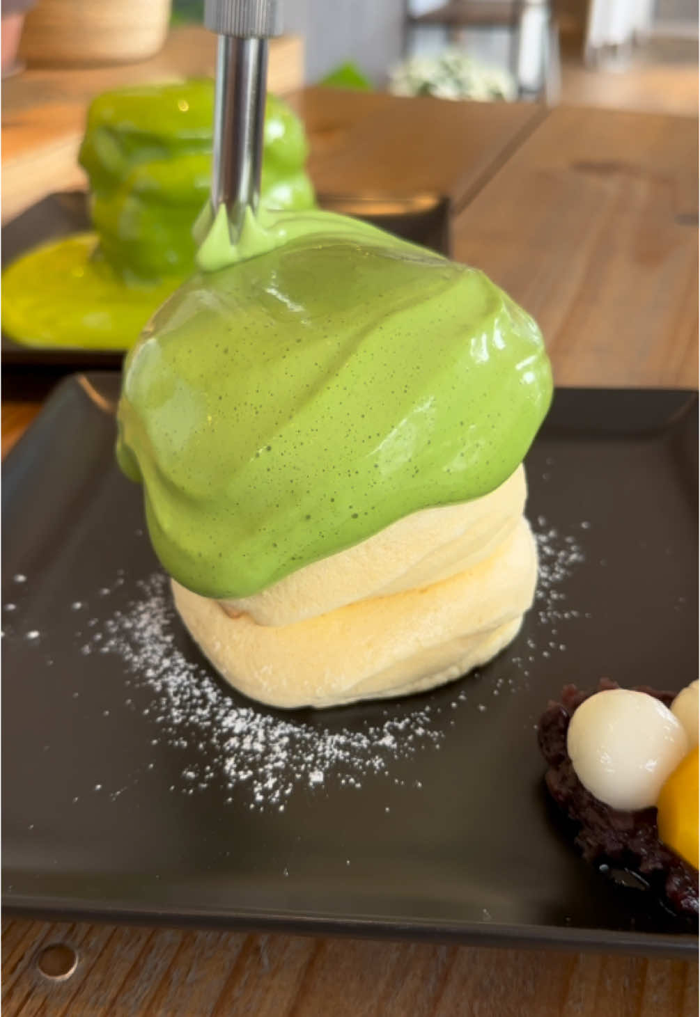 全身に抹茶エスプーマをかけるパンケーキ#愛知グルメ #tiktokグルメ