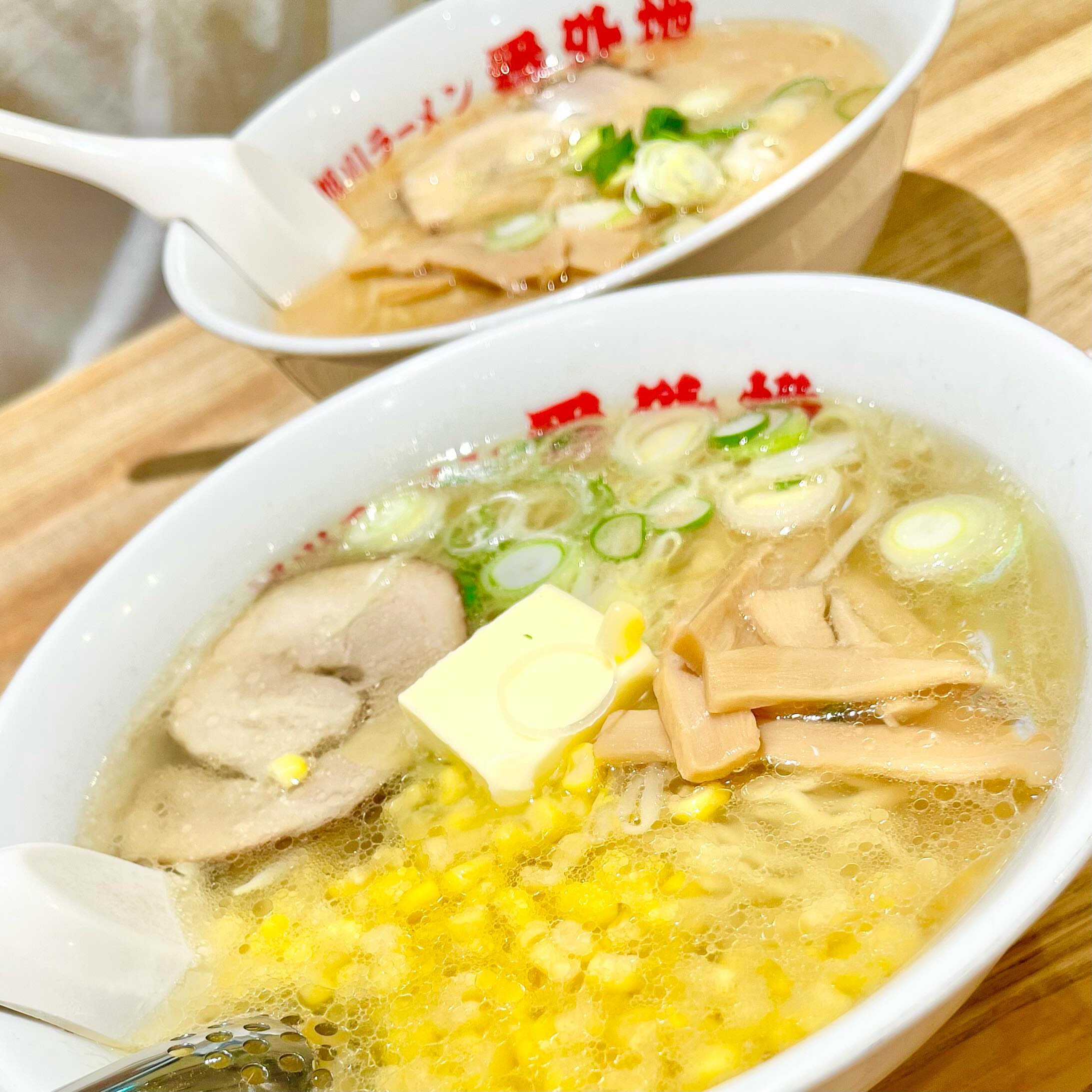 旭川ラーメン番外地の塩バターコーンラーメンと味噌ラーメン🥢