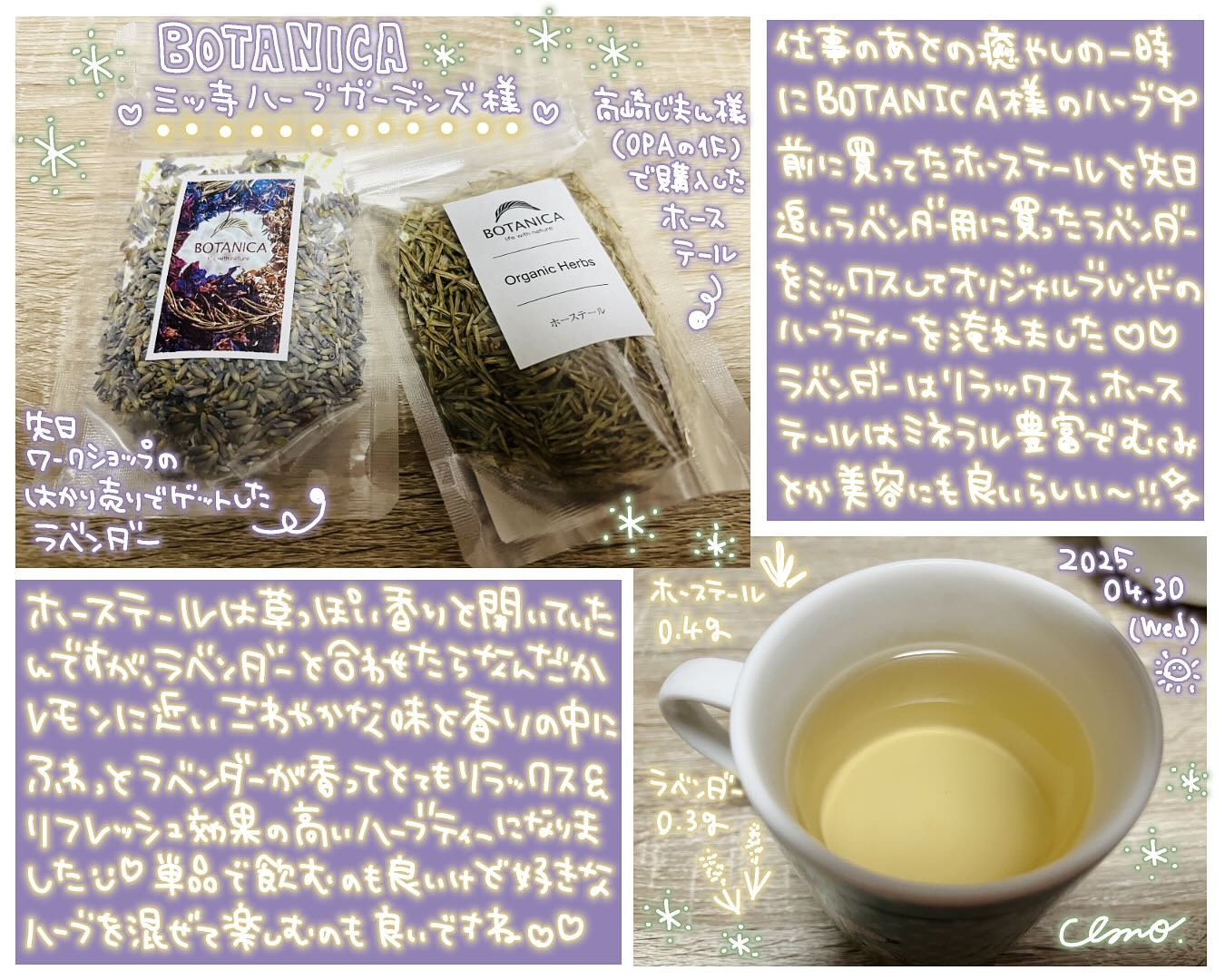 BOTANICA様の量り売りハーブ、そのまま飲む以外にブレンドして楽しむという方法もあることに気付いてしまった。。!✨