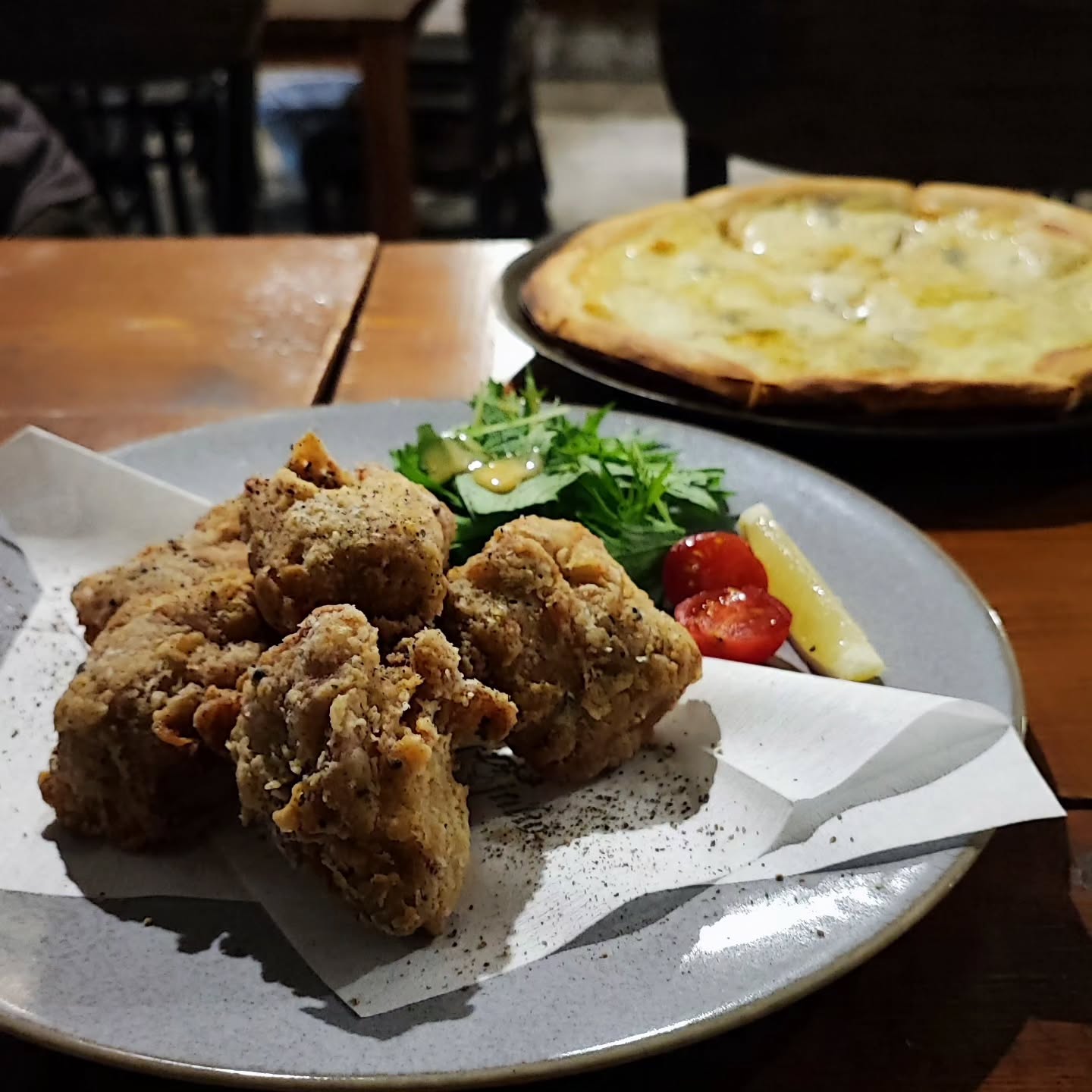 唐揚げは美味しかったけどピザの生地がサクサク...