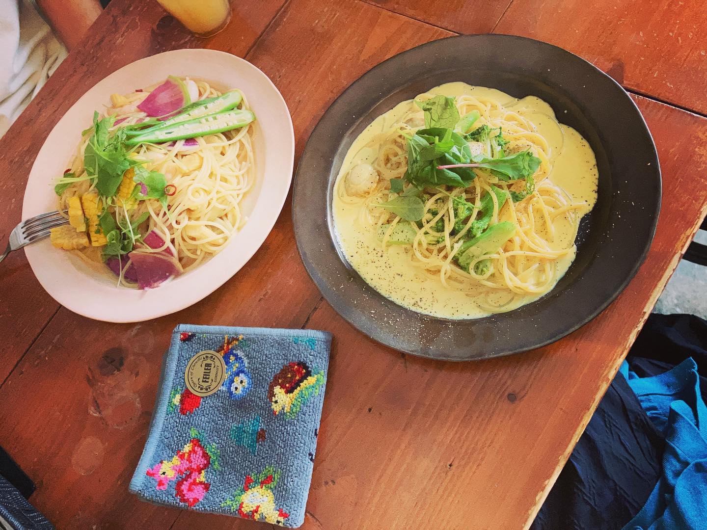 オイル系のパスタ好きです😊。とっても混んでいてギリギリ入れた感じだった〜。