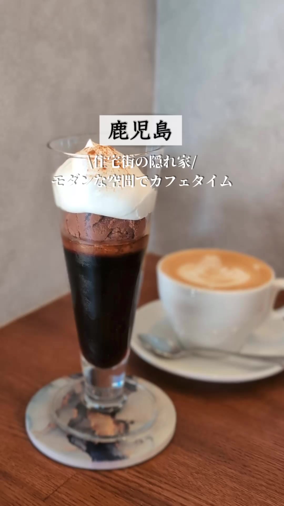 紫原の住宅街にあるモダンなカフェ。自家焙煎コーヒーを使ったコーヒーゼリーをはじめ、パフェやテリーヌなど豊富なスイーツ。ドリンクセットは全品200円引きで、1000円以下で楽しめます。友人や恋人とゆっくり過ごせる落ち着きある空間です。