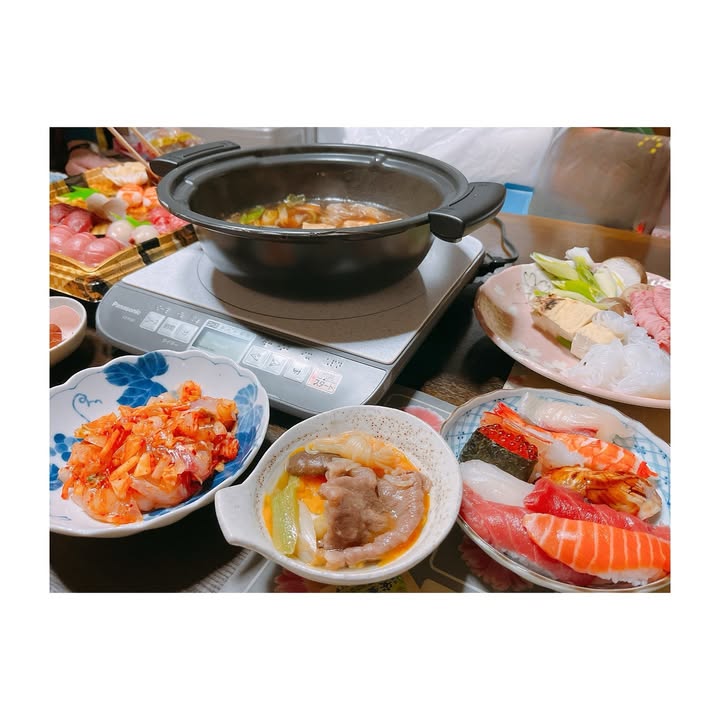 すき焼き、お寿司、キムチカルパッチョ