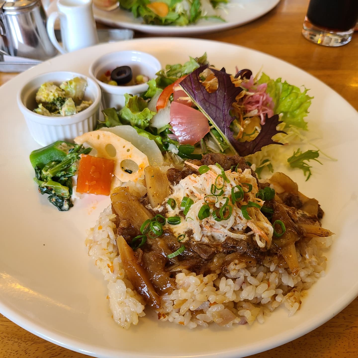 *ごはんプレート:根菜ピラフと牛肉ごぼうの洋風しぐれ煮(ドリンク、デザート、スープ付) 1430円