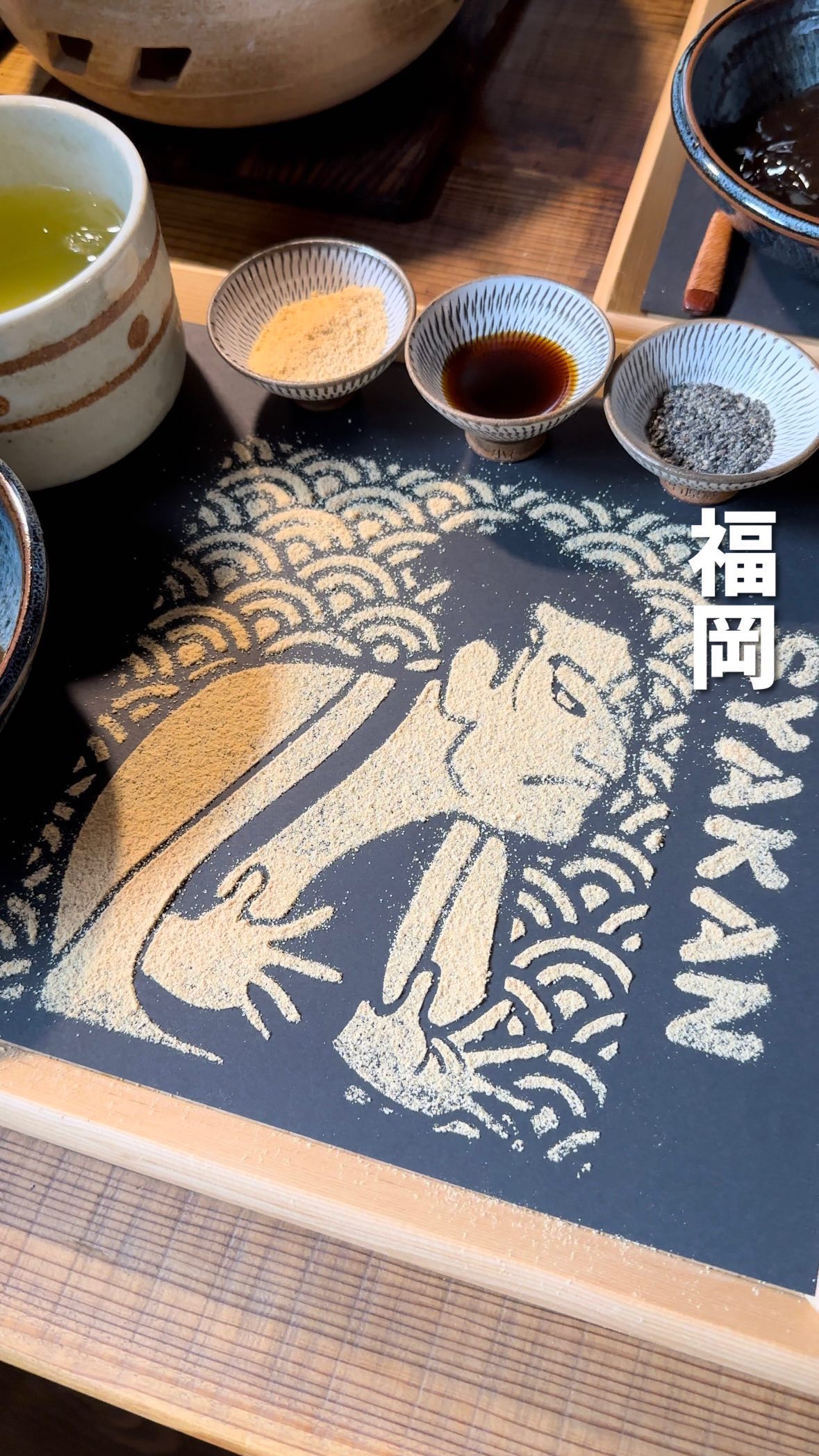 🍵🍡思わず飲みたくなる!!とろ〜り『出来たてわらび餅』きな粉で描かれたイラストにつけて食べる新感覚セット🍡🍵