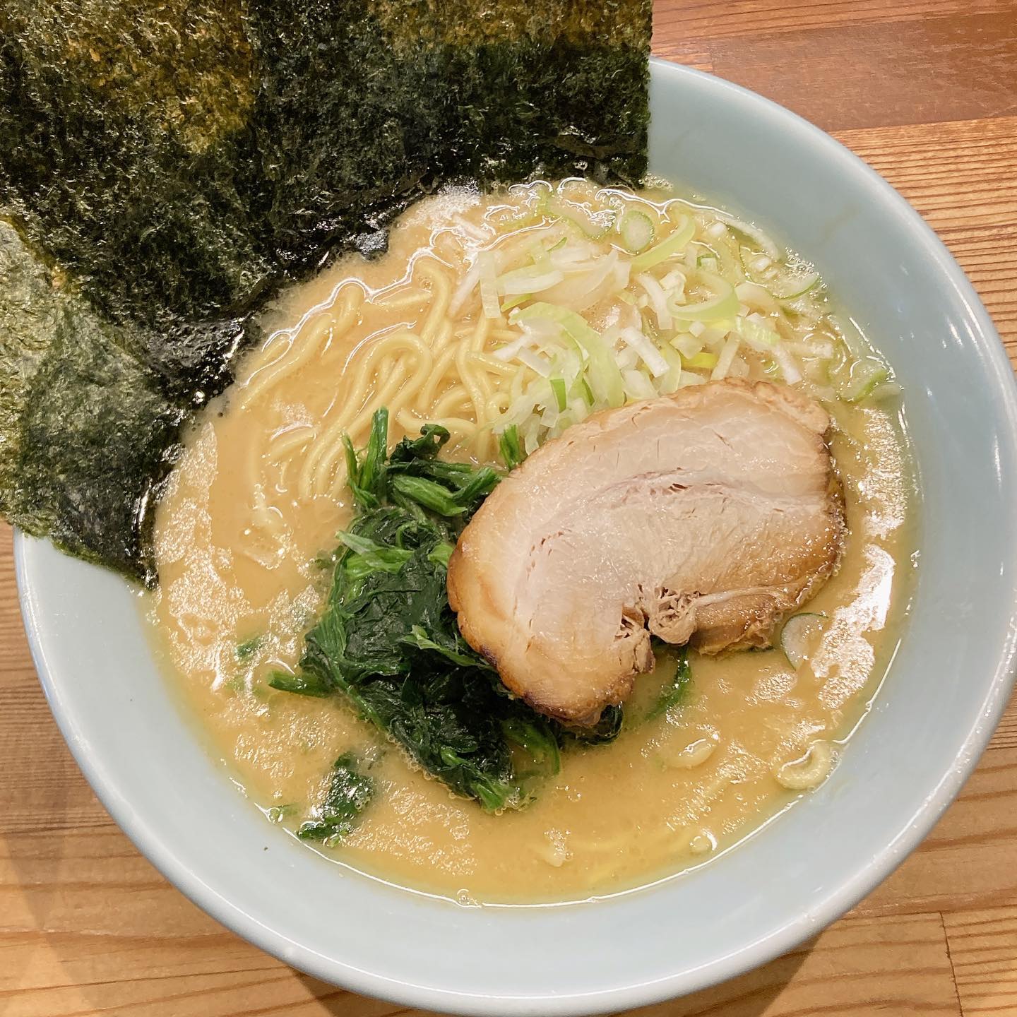 分厚いチャーシューとたっぷりのほうれん草、そしてそびえ立つ海苔...