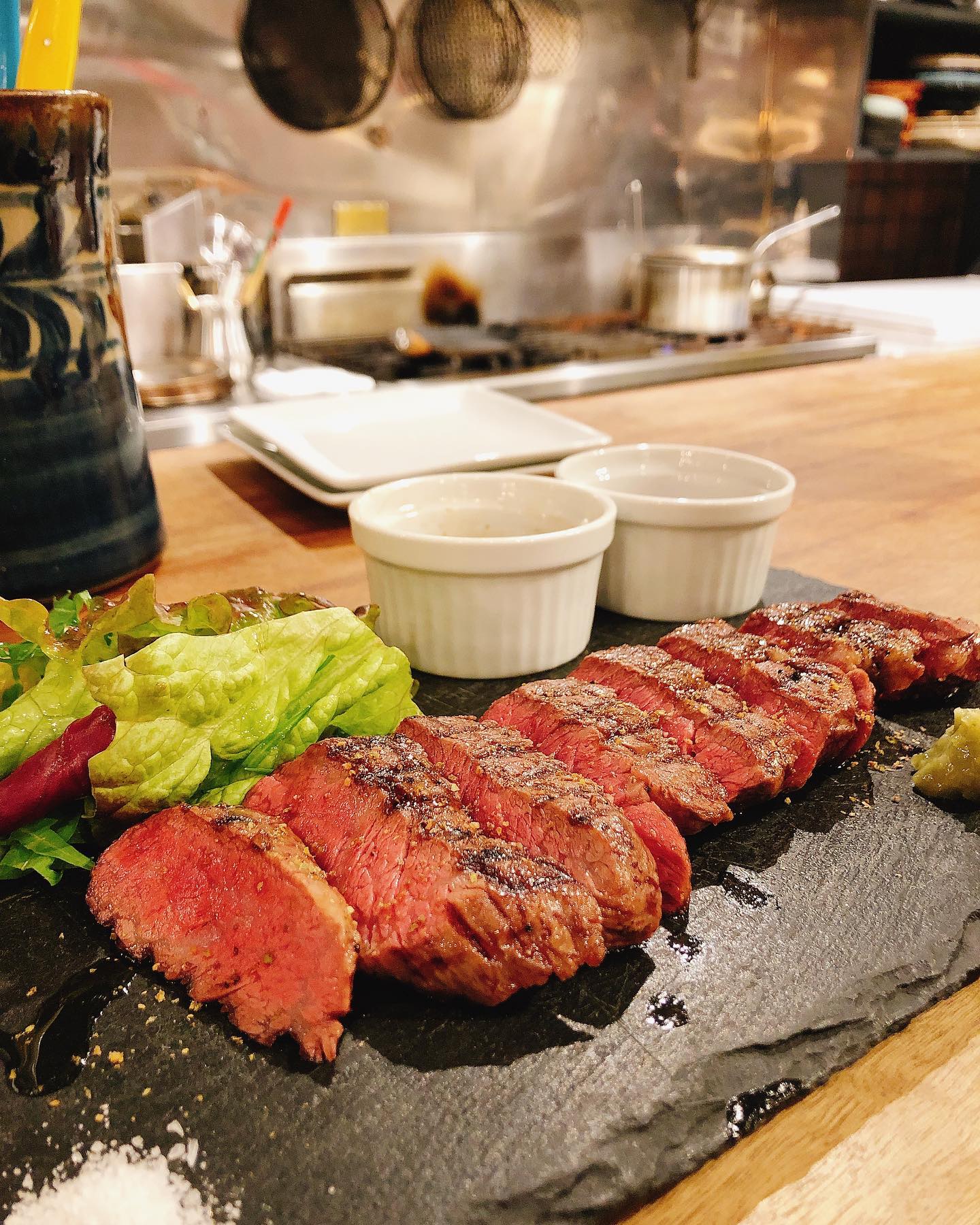 肉バル「Slow Life 」特製、宮崎牛もも肉のたたきと生牡蠣を合わせたスペシャリテが誕生しました...