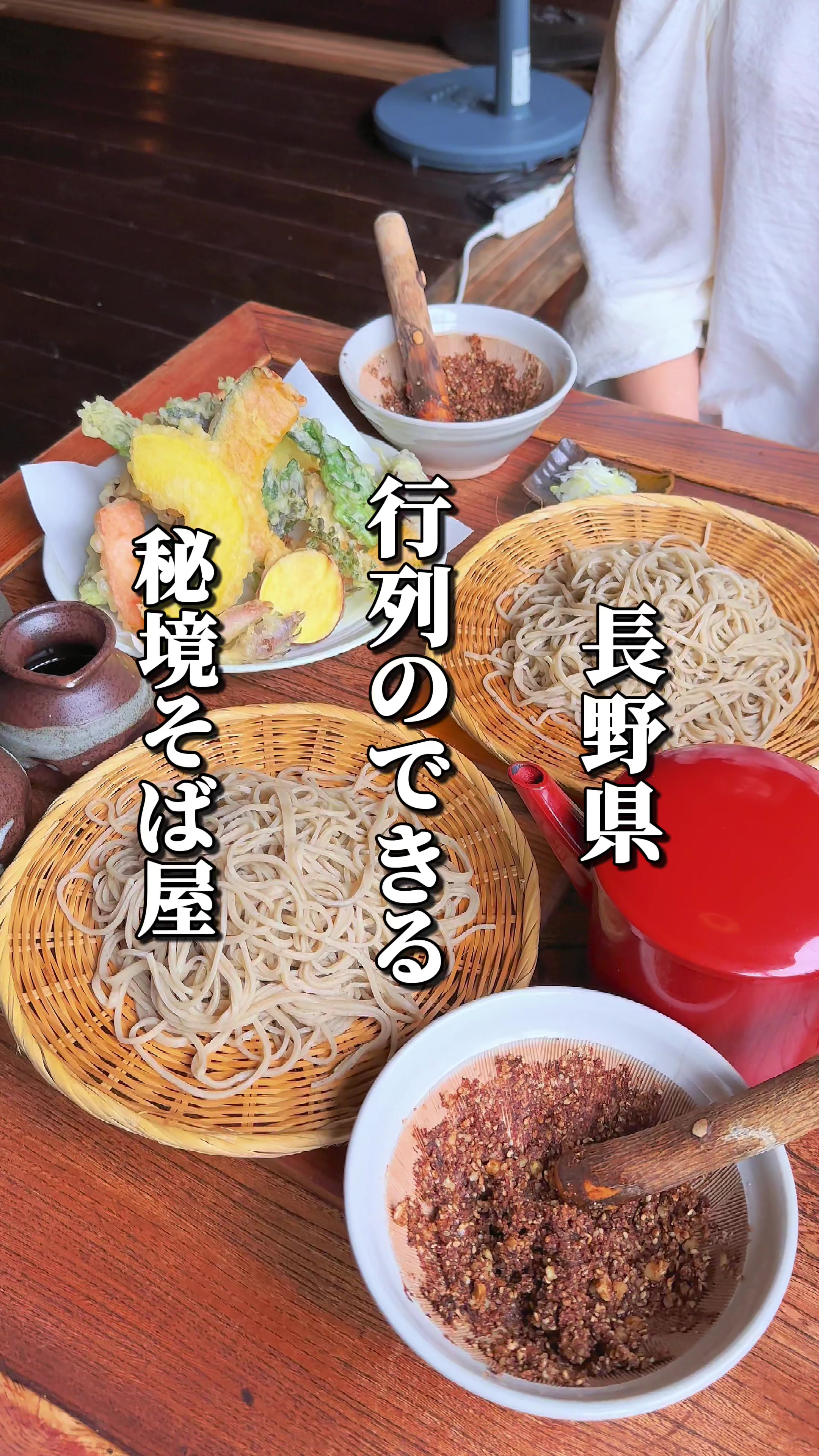 長野県の秘境にある『蕎麦屋蛍』は、蕎麦2種『蛍の緑』『深里』と薄衣の揚げたて天ぷらが自慢です。天ぷらは15種ほどで山菜も楽しめ、くるみダレは手作り。古民家を改装した店内は灯りと囲炉裏が情緒的で、職人技が見えるガラス張りです。持ち帰りパックは無料、11/1〜12/1にはくじ引きも開催します。