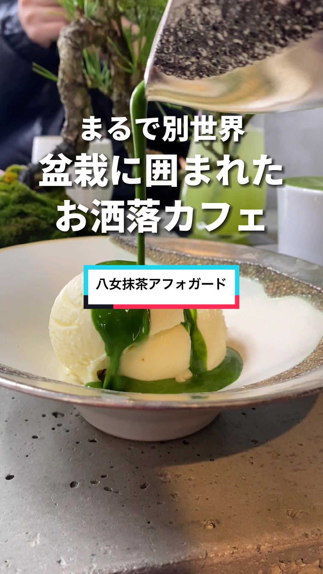 抹茶好きは絶対行くべき!盆栽に囲まれた異空間で味わう抹茶ラテや抹茶アフォガードが絶品すぎる。お洒落なスイーツは写真映え間違いなし!#福岡グルメ #福岡カフェ #抹茶スイーツ #tiktokグルメ
