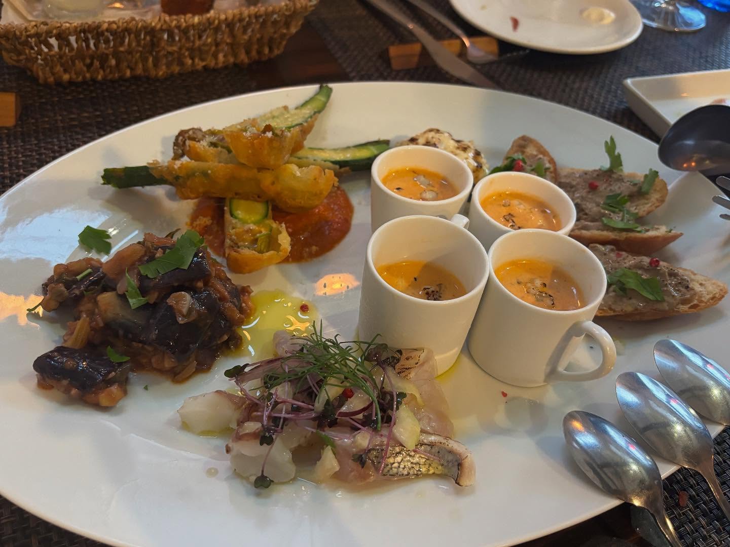 前菜の盛り合わせには冷静スープ...