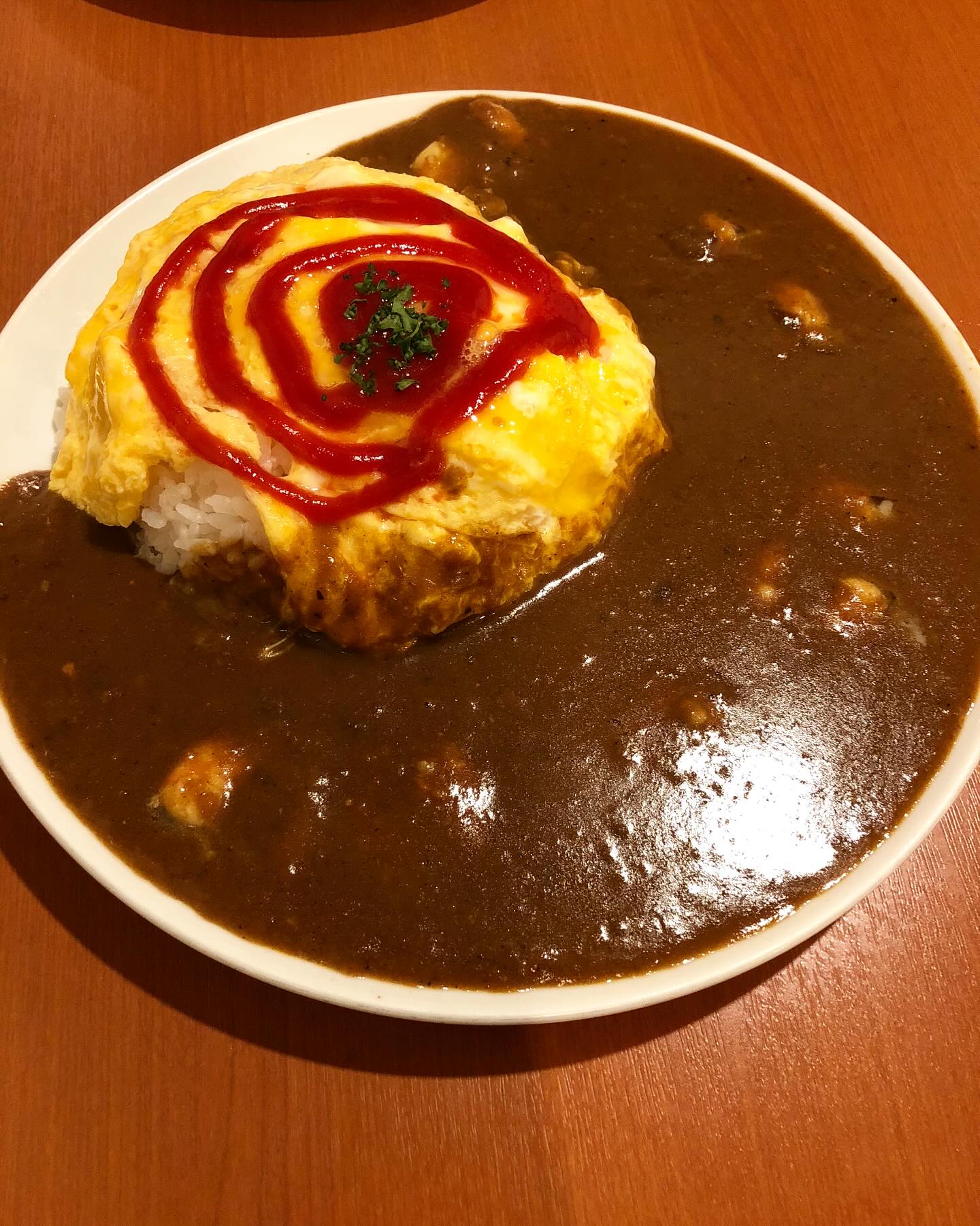 こちらではいい塩梅の変化球が効いたオムライス、カレーライスが頂けます。