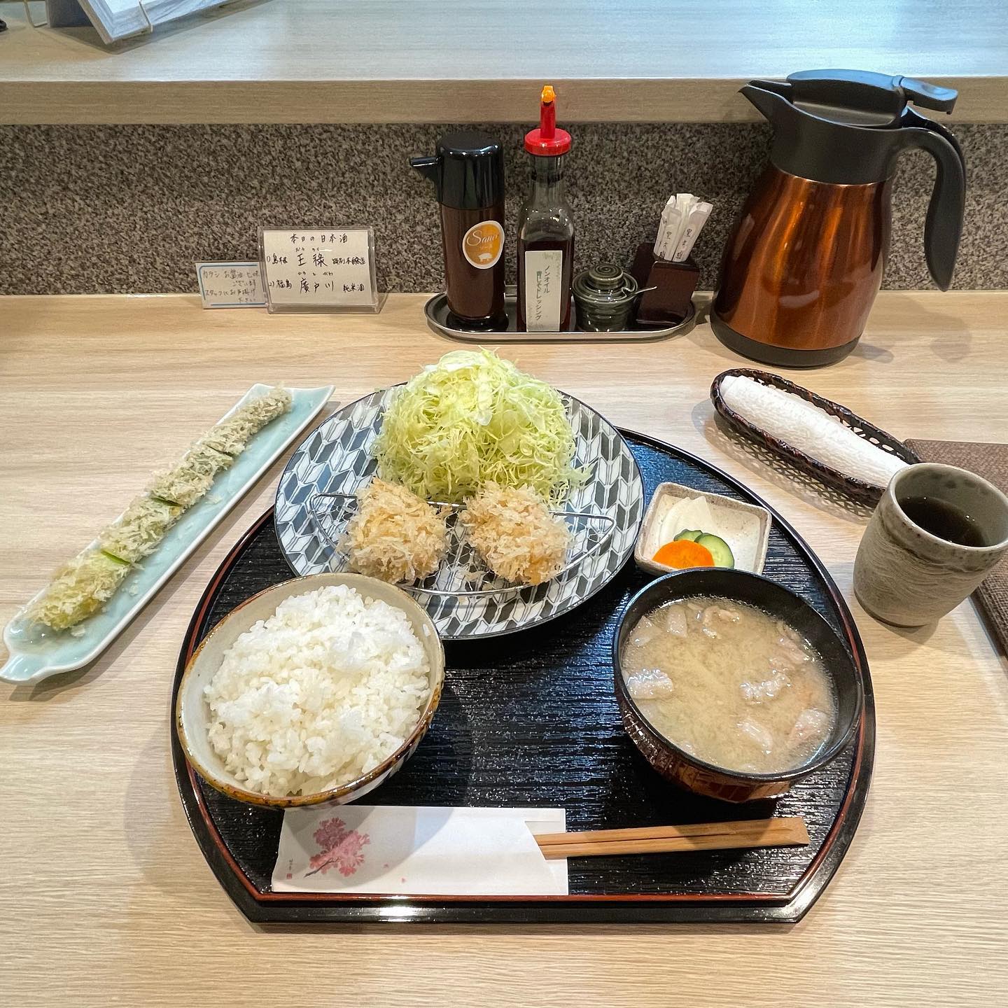 群馬・前橋の『かつひろ』は“白いとんかつ”が看板の店です。ひれかつ定食2枚に棒ホタテのフライ・椎茸肉詰めフライなど、揚げ物のバリエーションが個性的です。ごはん大盛り無料・豚汁・キャベツおかわり100円、落ち着いた座敷も魅力です。