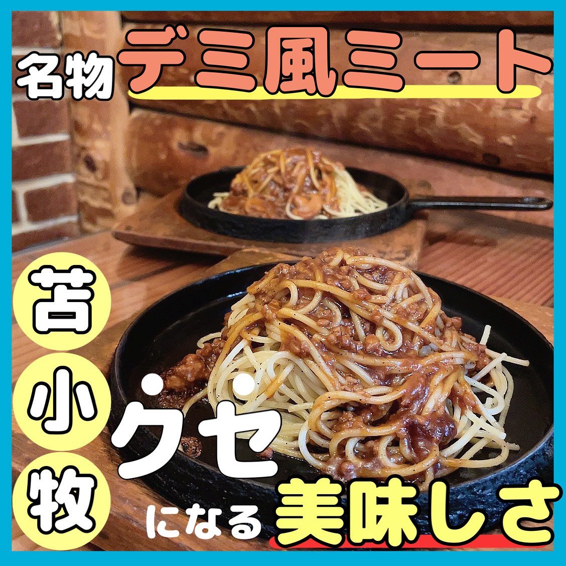 鉄板にのって熱々で食べれるパスタは、自家製の甘辛いデミ...