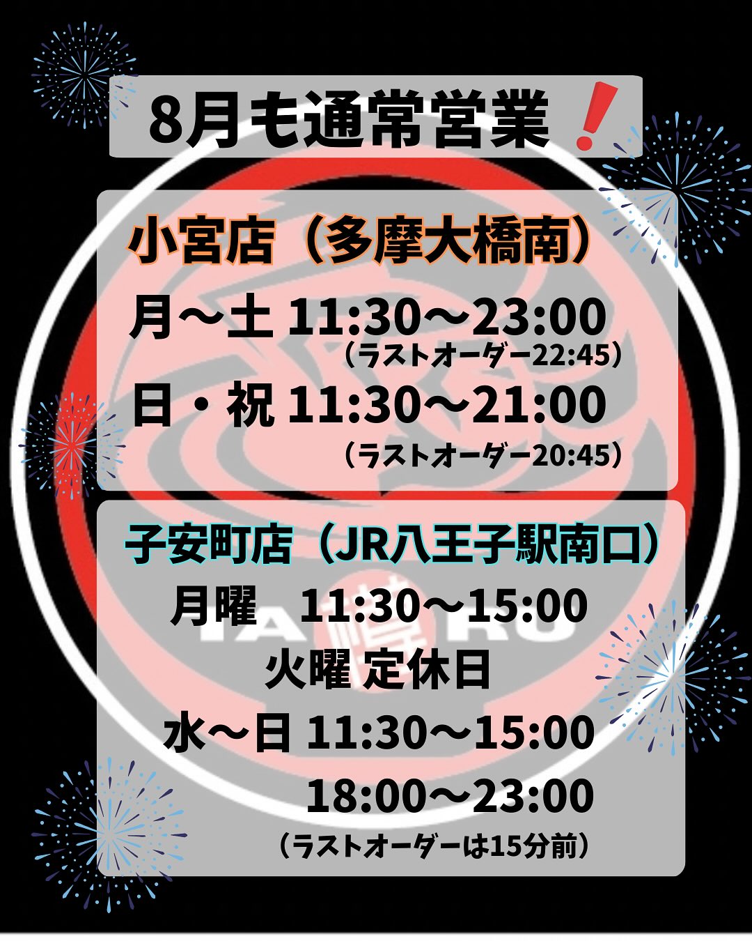 小宮店(多摩大橋南)子安町店(JR八王子駅南口)ともに