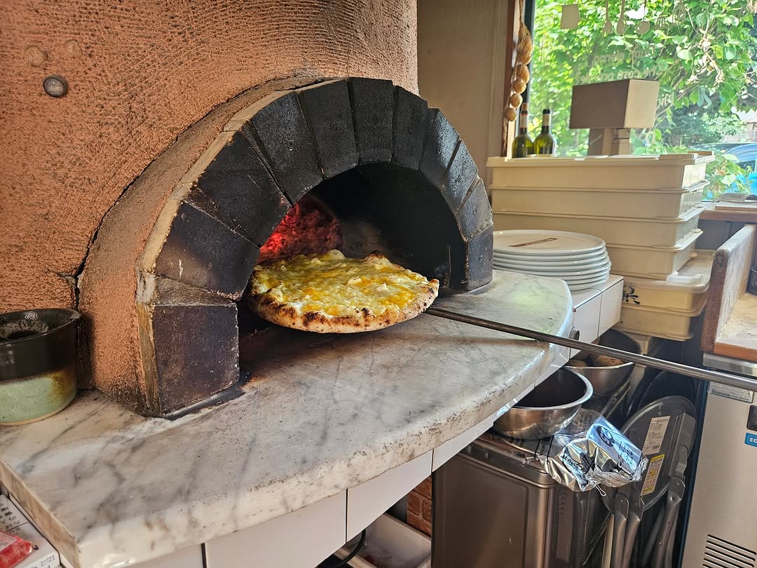 午後からの勤務に備え、神鍋高原で土日祝のみ営業のピザ屋さんに。平日は向かいのお店で栃もちを作っているご主人が土日祝にはこちらでピザを焼きます。店内には本格的な石窯があり、あっという間にクアトロフォルマッジがこんがり焼き上がりました