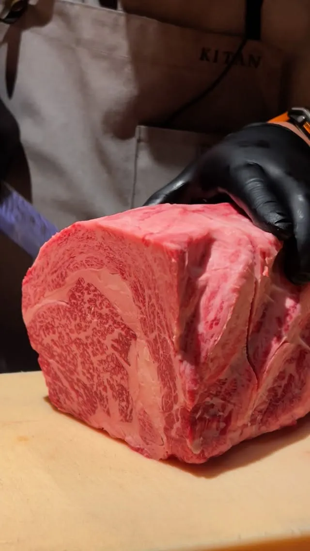Dry Aged Wagyu Ichibo, also known as Picanha, sliced to order at @kitan_hibiki