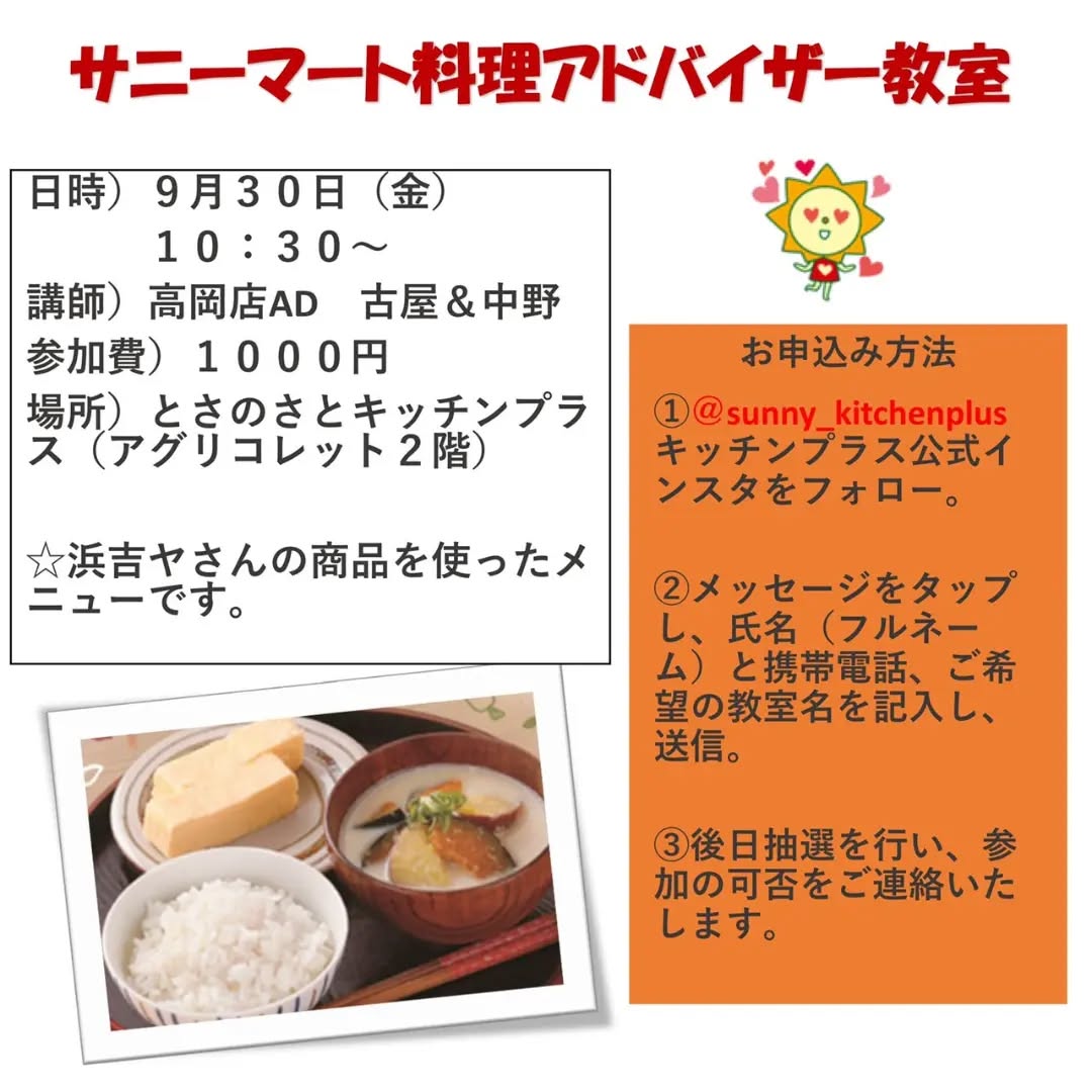 毎回好評いただいている、料理アドバイザーさんの料理教室のご案内です🎵