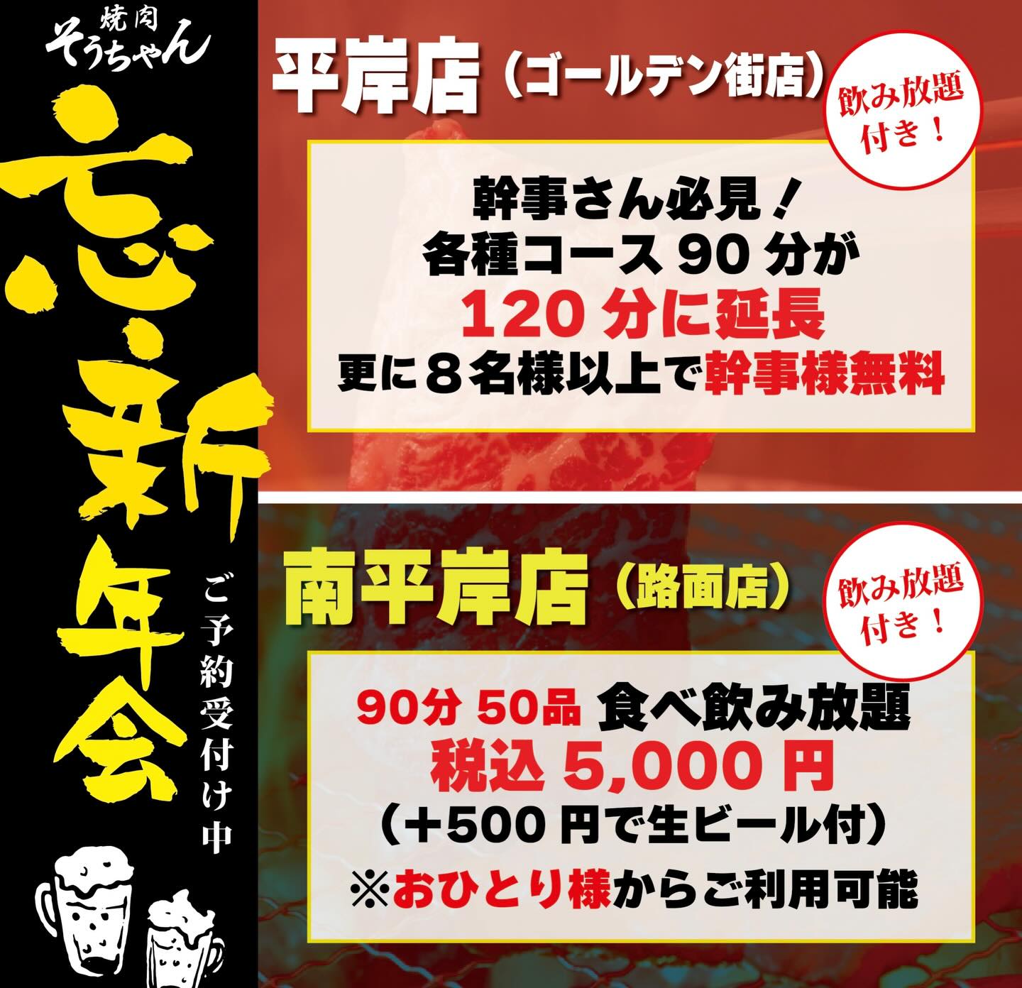忘新年会は焼肉そうちゃんがお得!🉐