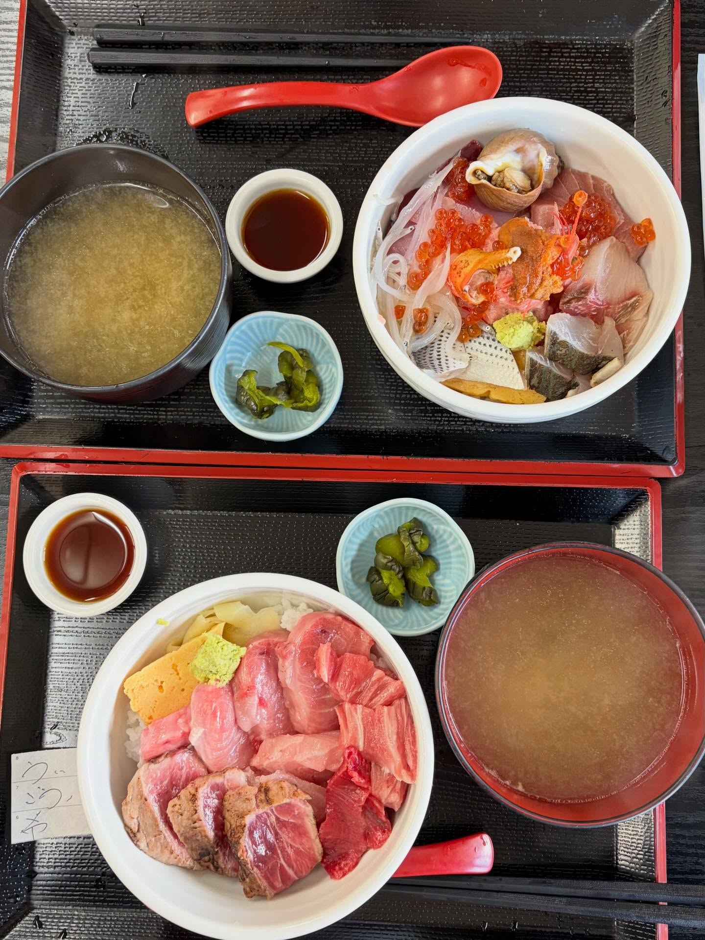 生本まぐろ丼(おおとろ,あかみ),特盛ごうか海鮮丼(旬のネタ13種)