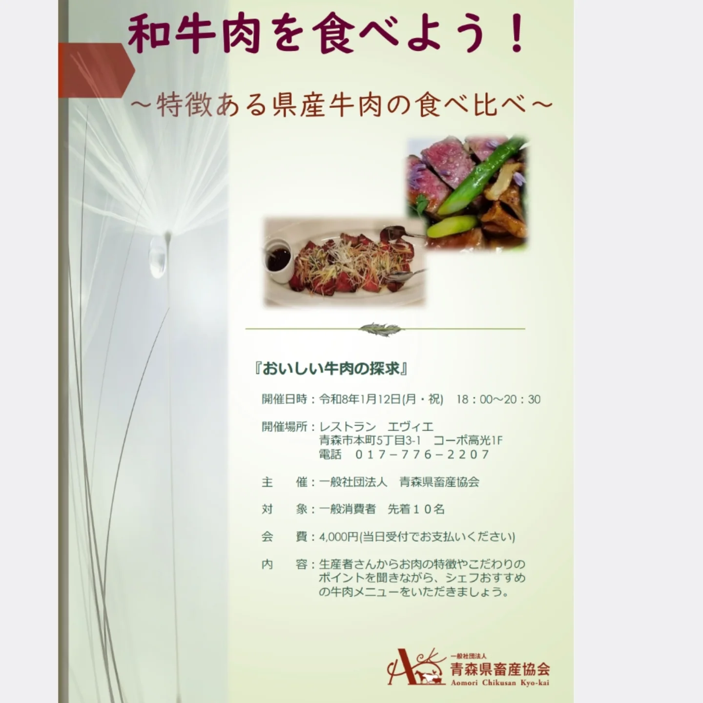 年明け、1月12日(月)祭日当店にて、青森県畜産協会主催の、青森県の5人の生産者様の牛肉の色々な部位の食べ比べ...